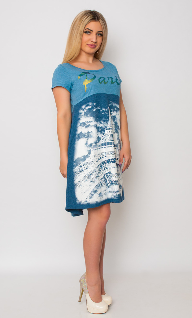 Бренд: Дарья Количество изделий на один размерный ряд: 4 Материал: штапель Состав: 50%вискоза 50%хлопок Размеры: 44,46,52,54 Цвет: В ассортиментеГолубой