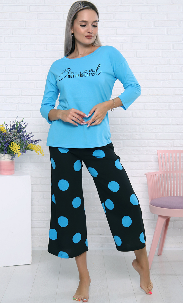 Бренд: Дарья Количество изделий на один размерный ряд: 2 Материал: штапель Состав: 100% полиэстер Размеры: 44,46 Цвет: Голубой