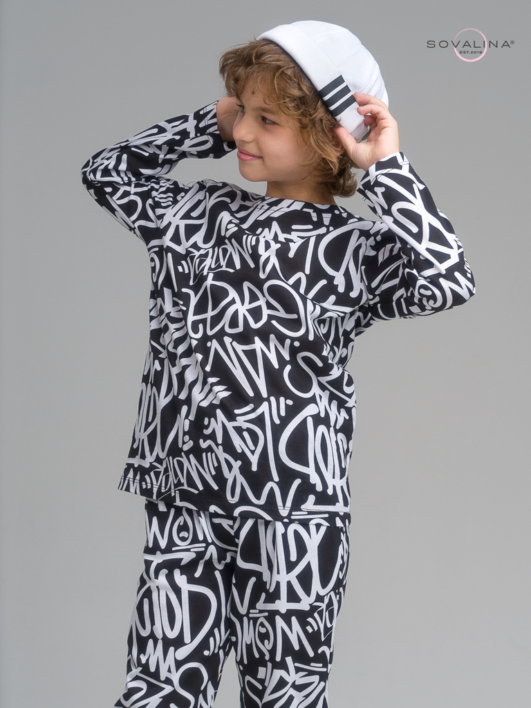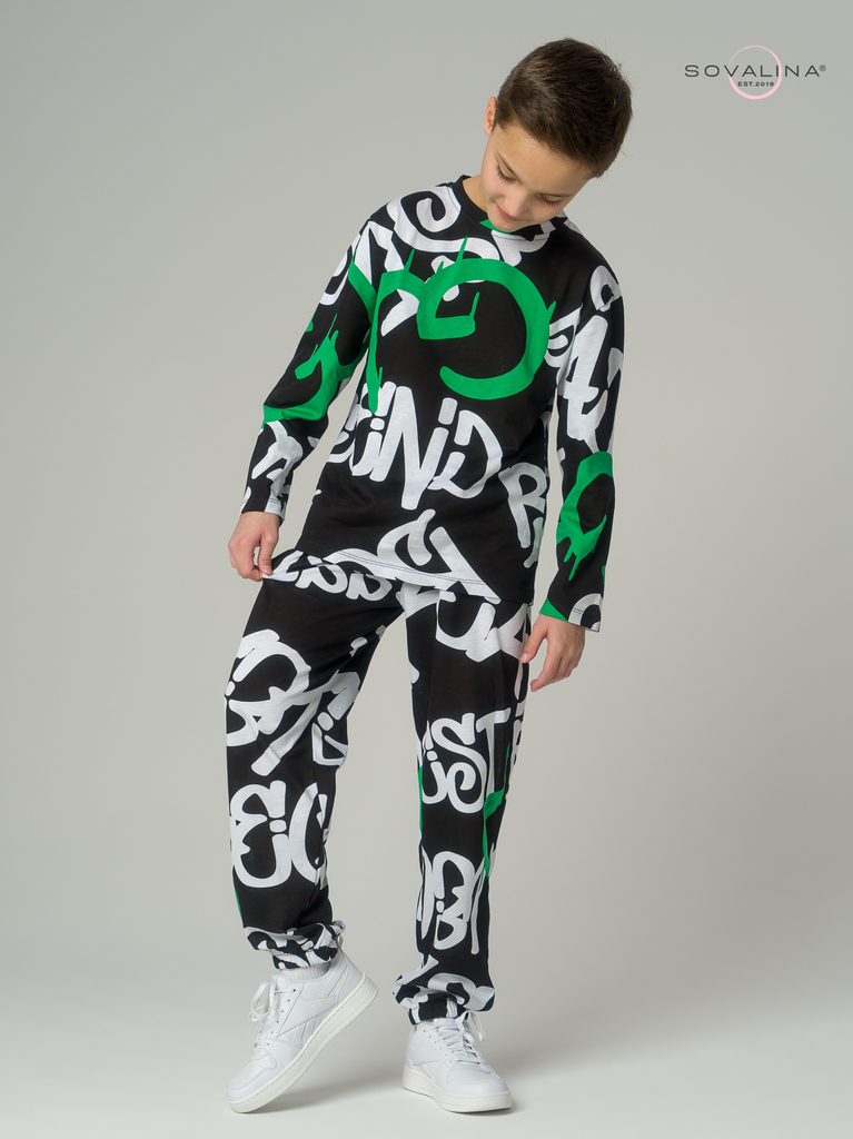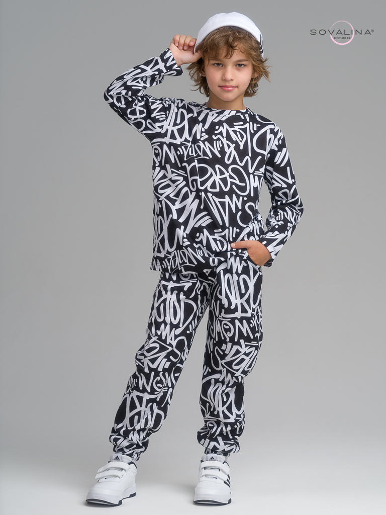 Легкий хлопковый комплект для юных мальчиков и подростков от бренда SOVAlina. Детский спортивный костюмчик двойка состоит из легкой кофты лонг с принтом. Он выполнен из тонкого и прочного трикотажа, ч... Показать описанието делает его идеальным на каждый день. Модный комплект также включает штаны на резинке и с карманами, имеют комфортную посадку для активного отдыха, спортивных игр и мероприятий. Резинка в брюках имеется не только в поясе, она присутствует и внизу каждой ноги как манжеты. Футболка с длинными рукавами и актуальным дизайном добавляет стильный акцент этому комплекту. Свободная кофточка и брюки изготовлены из хлопка, что обеспечивает максимальный комфорт и свободу движений. Костюм подойдет для дома, для сна и в садик, так как это дышащий материал. Этот тонкий и легкий комплект с лонгсливом также подходит как форма для тренировок, физкультуры и спорта. Выполнен из высококачественных материалов, производства Турция, чтобы обеспечить долговечность и комфорт.