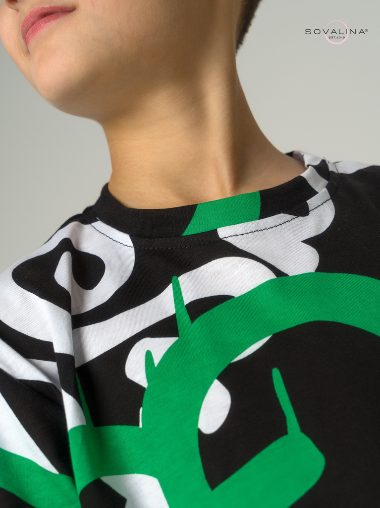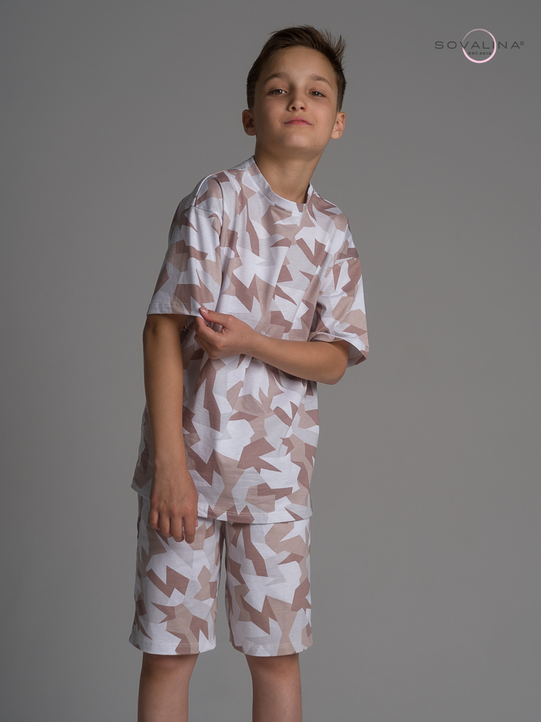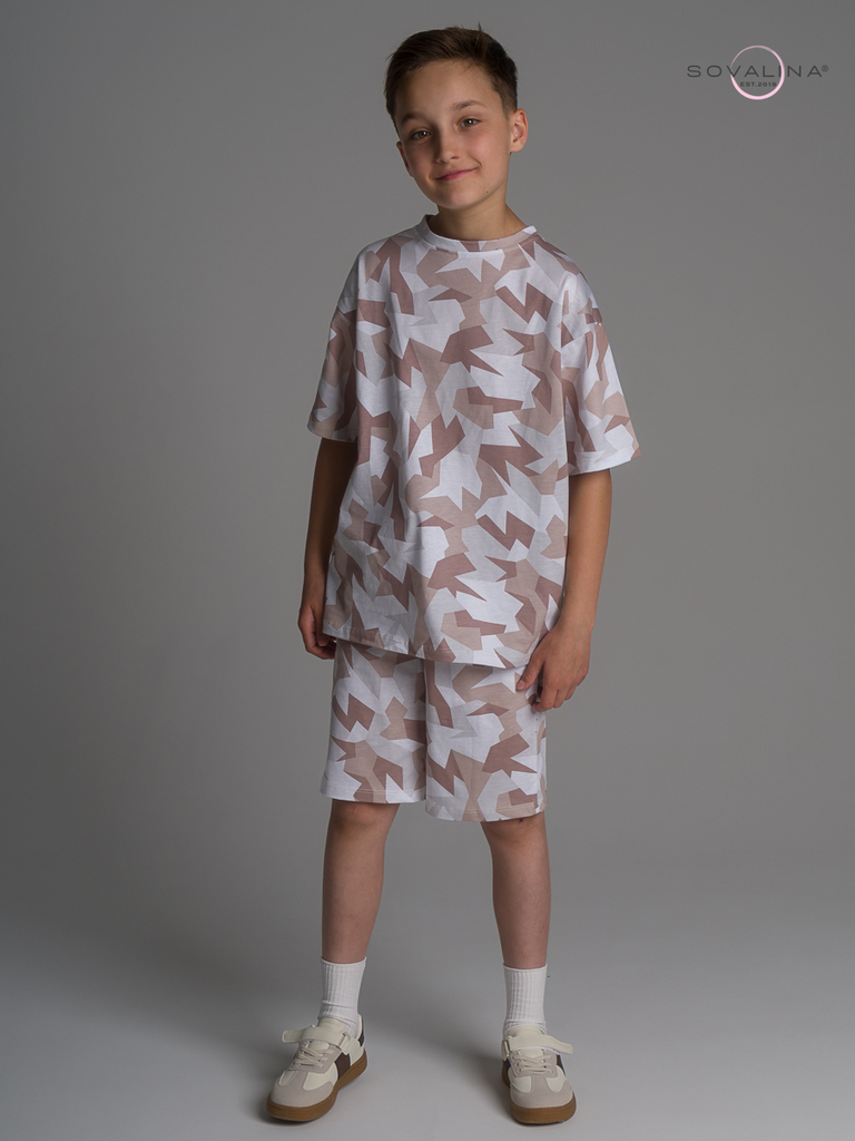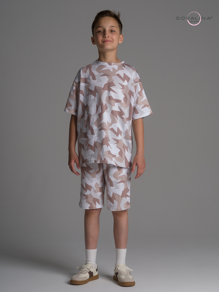 Летний хлопковый комплект для мальчиков бренда SOVAlina. Детский спортивный костюмчик двойка состоит из легкой и широкой футболки с принтом. Она выполнена из тонкого и прочного трикотажа, что делает е... Показать описаниее идеальной на каждый день для встреч с друзьями, путешествий, на дачу. Модный комплект также включает шорты на резинке и с карманами, имеют комфортную посадку для активного отдыха, спортивных игр и мероприятий. Майка с короткими рукавами и актуальным дизайном добавляет стильный акцент этому комплекту. Свободная футболка оверсайз изготовлена из хлопка и обеспечивает максимальный комфорт и свободу движений, подойдет и для дома, так как это дышащий материал. Этот тонкий и легкий комплект также подходит как форма для тренировок, физкультуры. Выполнен из высококачественных материалов, производства Турция, чтобы обеспечить долговечность и комфорт. Задуман специально - стандартные шорты и большая оверсайз футболка.