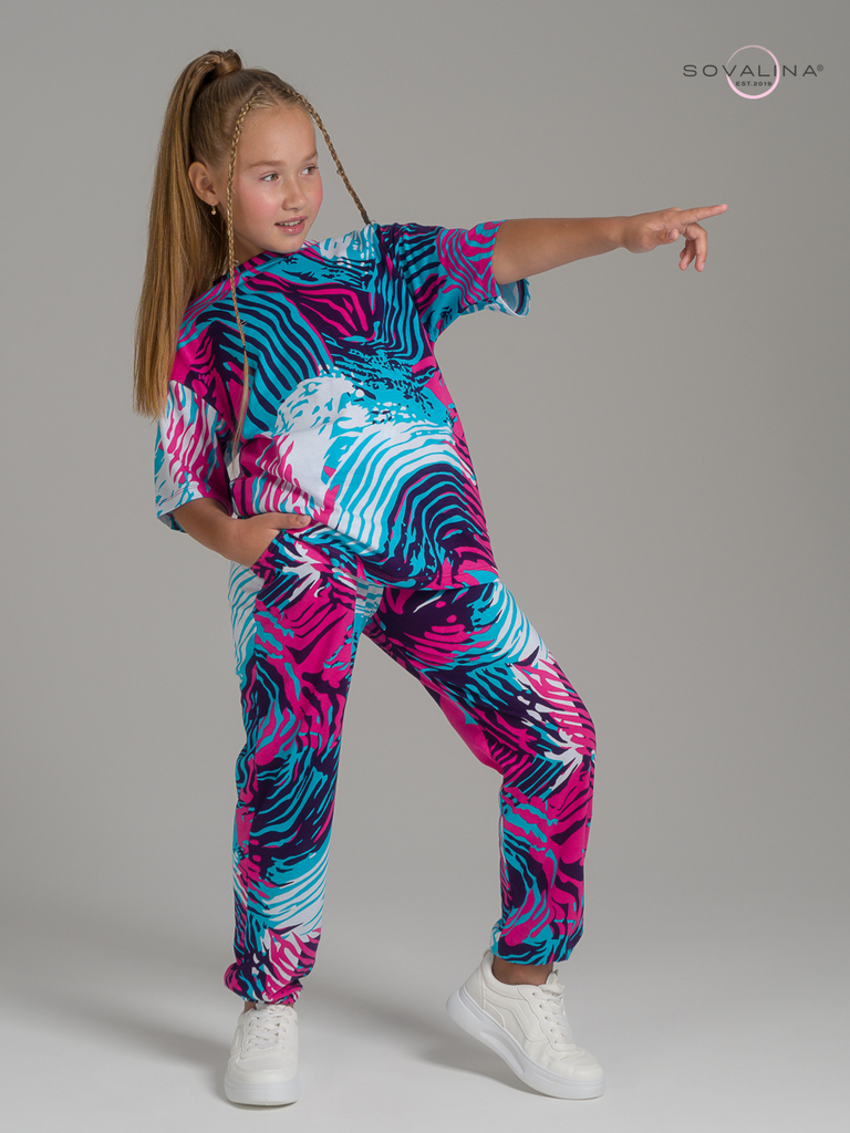 Легкий хлопковый комплект для подростков и юных девочек от бренда SOVAlina. Детский спортивный костюмчик двойка состоит из легкой и широкой футболки с принтом. Она выполнена из тонкого и прочного трик... Показать описаниеотажа, что делает ее идеальной на каждый день. Модный комплект также включает штаны на резинке и с карманами, имеют комфортную посадку для активного отдыха, спортивных игр и мероприятий. Майка с короткими рукавами и актуальным дизайном добавляет стильный акцент этому комплекту. Свободная футболка оверсайз и брюки изготовлены из хлопка, что обеспечивает максимальный комфорт и свободу движений. Костюм подойдет и для дома и на выход, так как это дышащий материал. Этот тонкий и легкий комплект также подходит как форма для тренировок, физкультуры. Выполнен из высококачественных материалов, производства Турция, чтобы обеспечить долговечность и комфорт. Задуман специально - стандартные спортивки и оверсайз футболка.