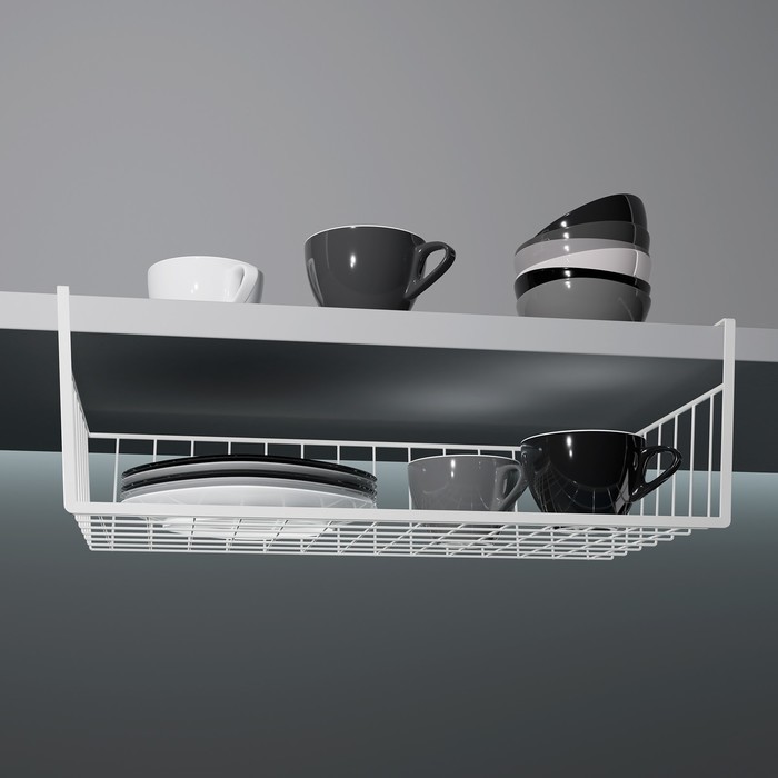 Сетчатая навесная корзинка от торговой марки Доляна предназначена для использования дополнительной возможности расширить имеющуюся полезную площадь на кухне. Преимущества: * Универсальный подвесной ор... Показать описаниеганайзер помогает решить проблему с ограниченным количеством мест хранения, эффективно использовать пространство в доме. * Полку можно использовать для сушки и хранения посуды, продуктов, столовых принадлежностей. * Её можно подвесить на стол, полку, полочку в холодильник и другие горизонтальные поверхности. * Крепится без сверления, надевается на стандартную полку. Дополнительно Для полки толщиной до 4 см