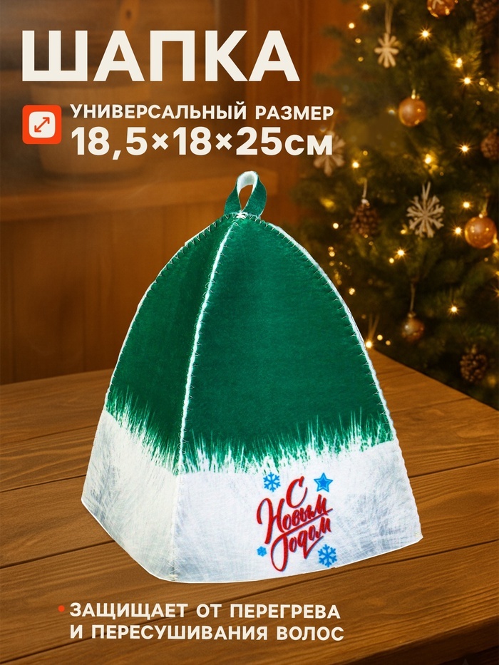 Набор для бани с принтом «С новым годом!», 5 предметов: шапка, рукавица, тапочки, коврик, портфель, зелёный, «Банная забава»Вопросы по товару