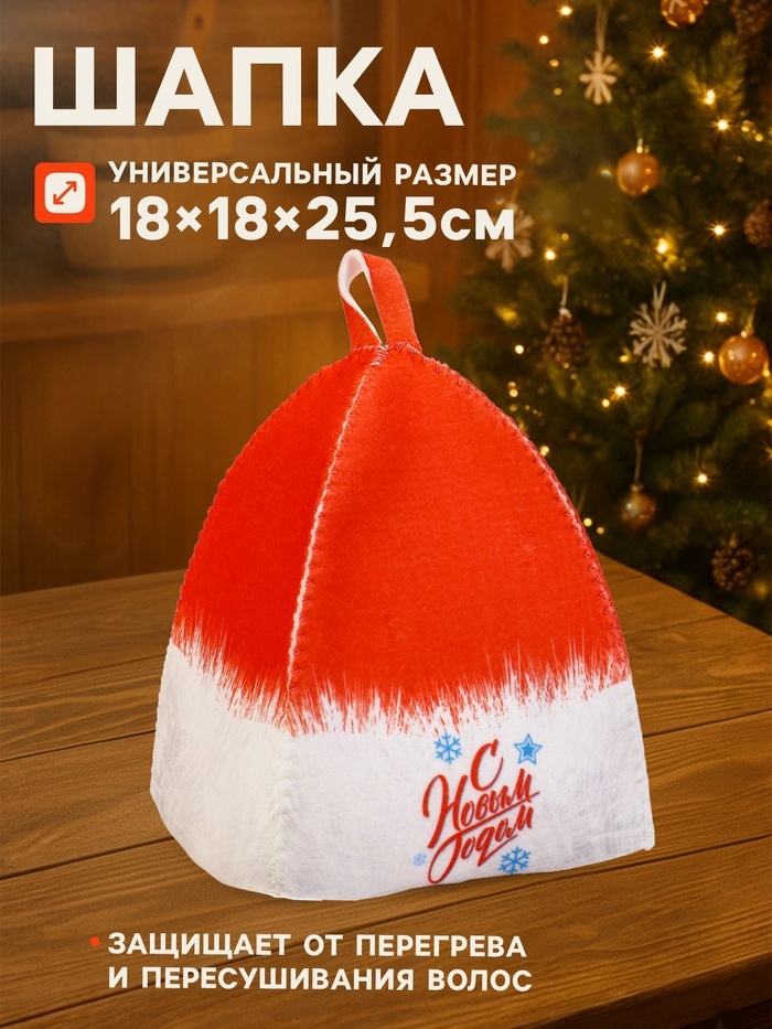 Набор для бани с принтом «С новым годом!», 5 предметов: шапка, рукавица, тапочки, коврик, портфель, красный, «Банная забава»Вопросы по товару