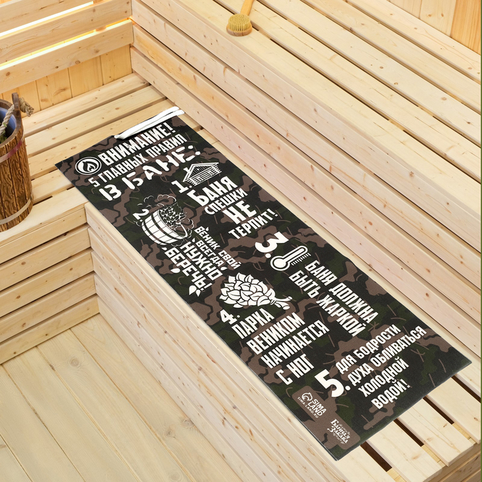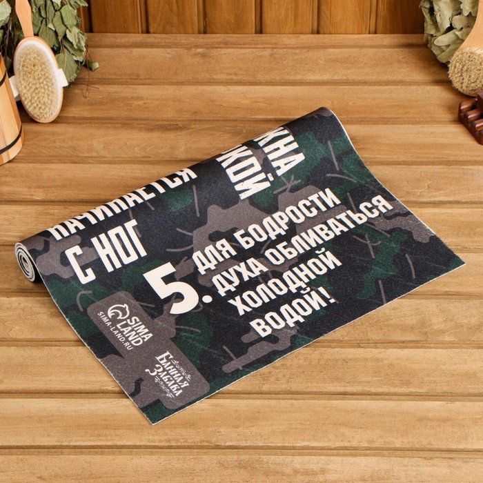 Коврик - лежак для бани и сауны с принтом «5 главных правил в бане», 150?50 см, полиэфир 70%, шерсть 30%, «Банная забава»Вопросы по товару