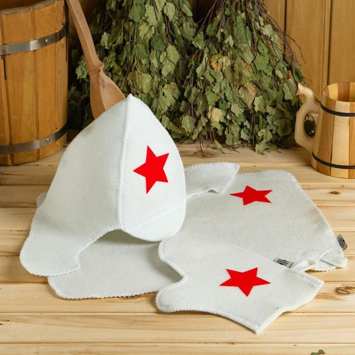 Набор для бани «Будёновец», 3 предмета: шапка, коврик, рукавицаВопросы по товару