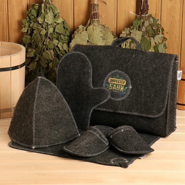 Набор для бани с принтом «Директор бани», 4 предмета: шапка, рукавица, тапочки, коврик, войлок, «Банная забава»Вопросы по товару