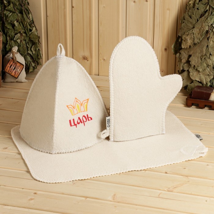 Набор для бани и сауны «Царь», 3 предмета: шапка, коврик, рукавица, «Добропаровъ»Вопросы по товару