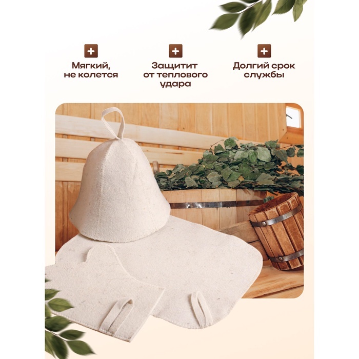Набор для бани и сауны, 3 предмета: шапка, коврик, рукавица, «Добропаровъ»Вопросы по товару