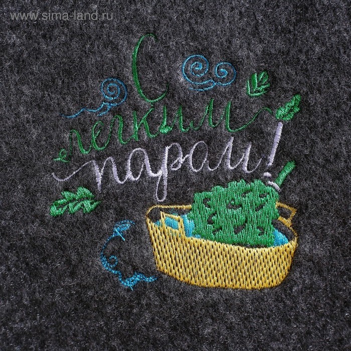 Набор для бани с вышивкой «С лёгким паром! Шайка», 5 предметов: шапка, коврик, рукавица, тапочки, сумка, тёмный, «Добропаровъ»Вопросы по товару