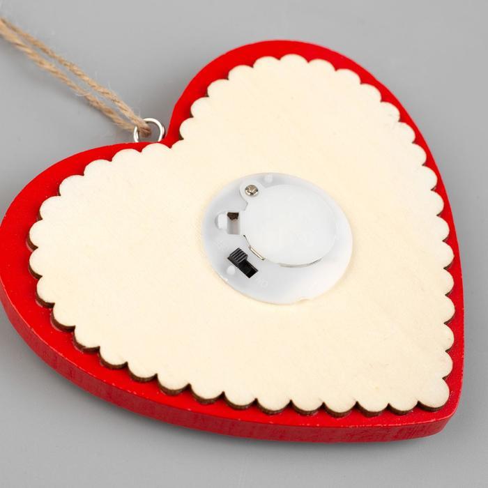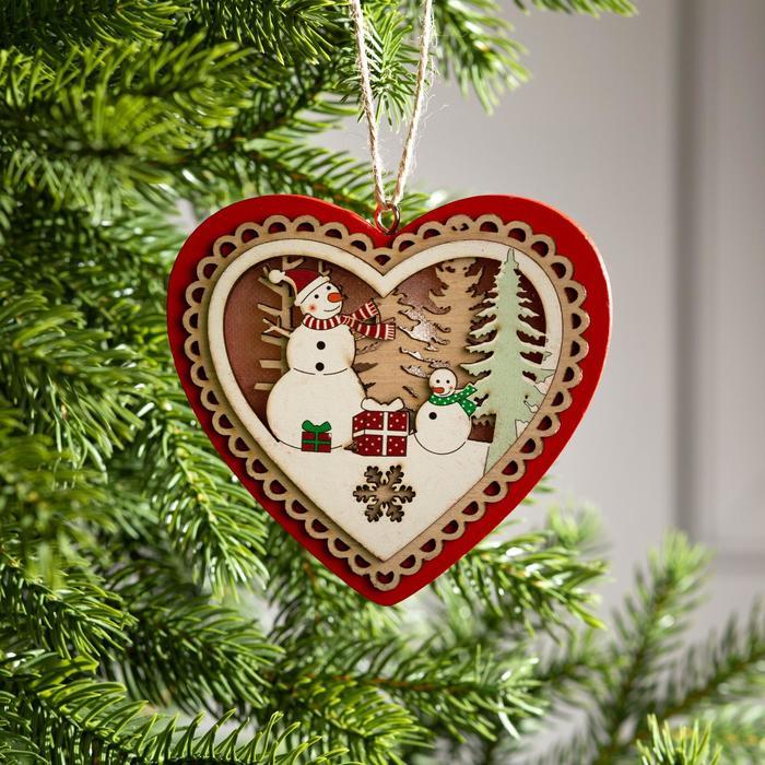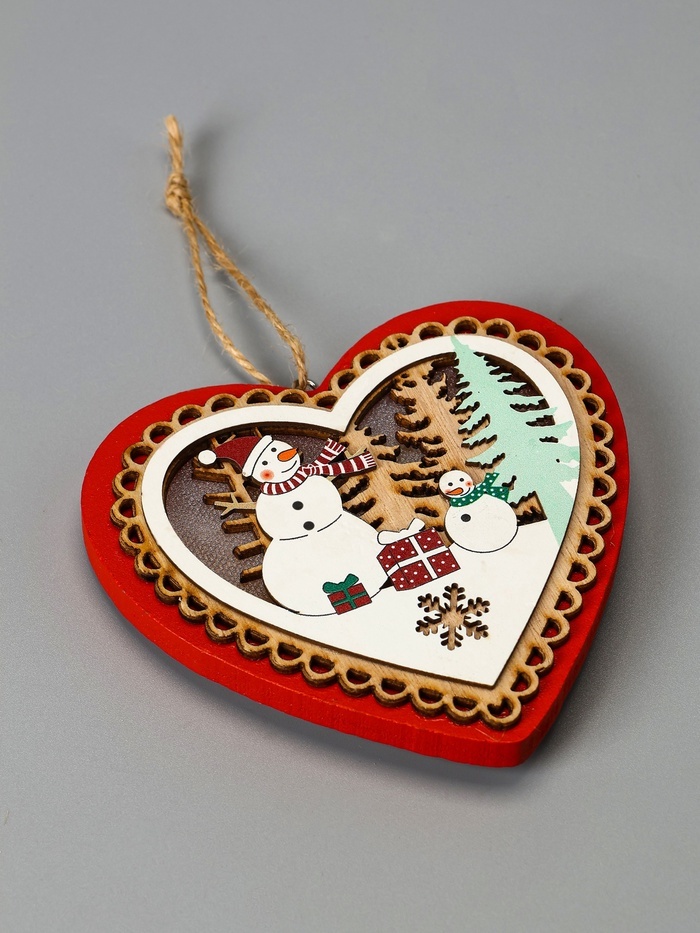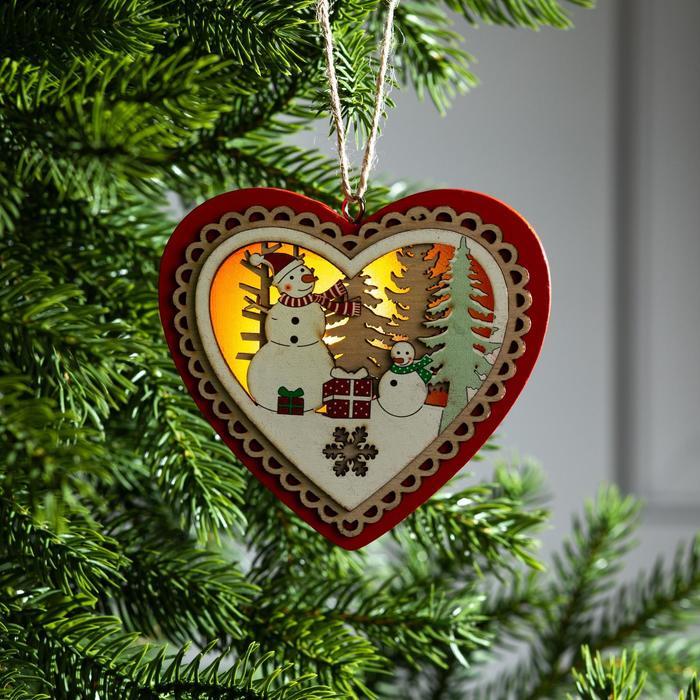 Ёлочная игрушка «Красное сердце со снеговиком», 11.5?10.5?1.5 см, от батареек, свечение тёплое белоеВопросы по товару