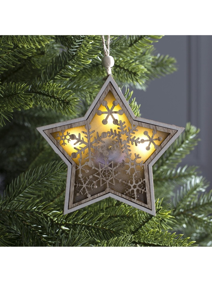 Ёлочная игрушка «Звезда в снежинках», 13?13?1 см, 3 LED, от батареек, свечение тёплое белоеВопросы по товару