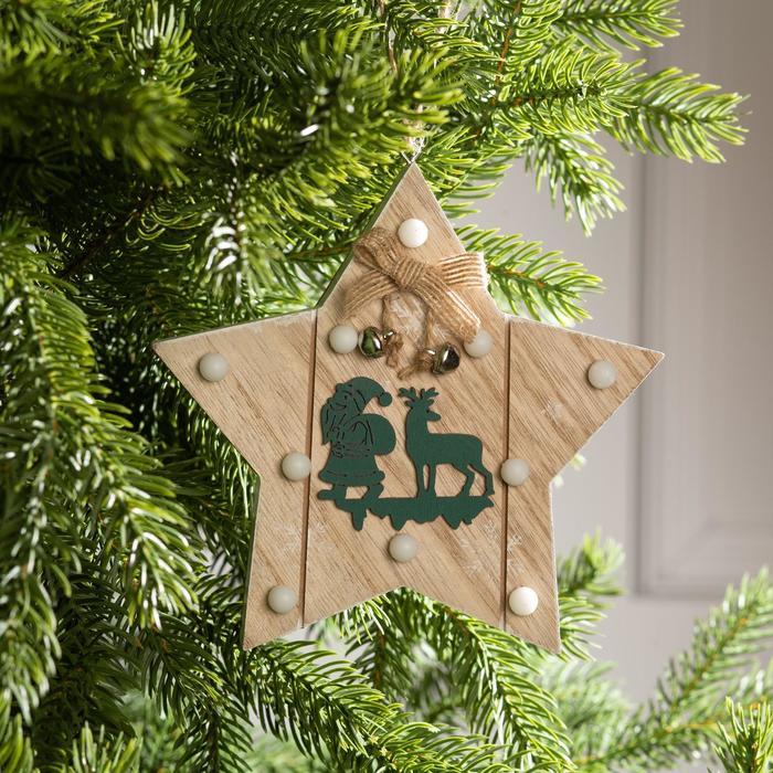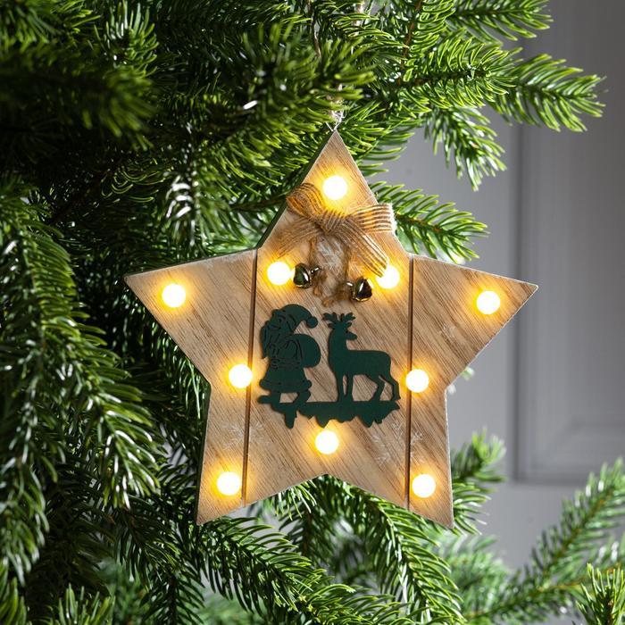 Ёлочная игрушка «Звезда с Дедом Морозом и оленем», 16?16?3, от батареек АААx2, свечение тёплое белоеВопросы по товару