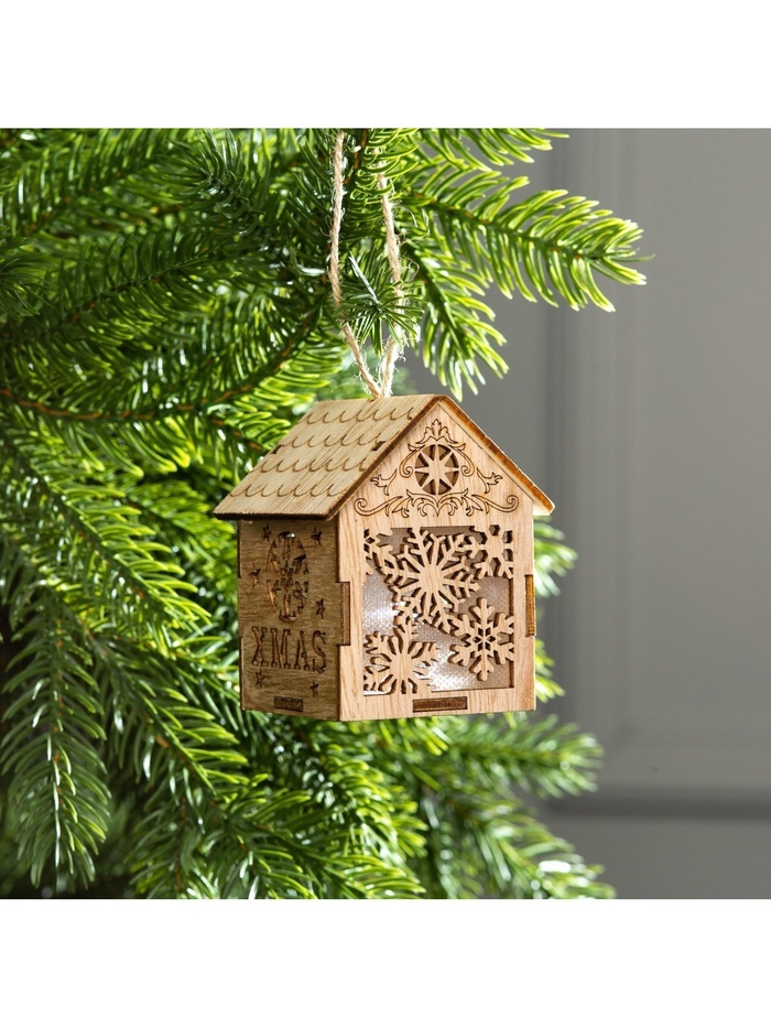 Ёлочная игрушка «Домик со снежинками», 8?6.5?6 см, от батареек, свечение тёплое белоеВопросы по товару