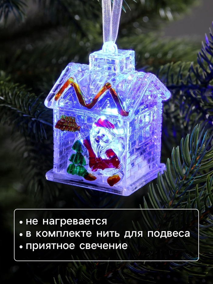 Ёлочная игрушка «Домик с Дедом Морозом», 8?7?6 см, 1 LED, от батареек, свечение тёплое белоеВопросы по товару