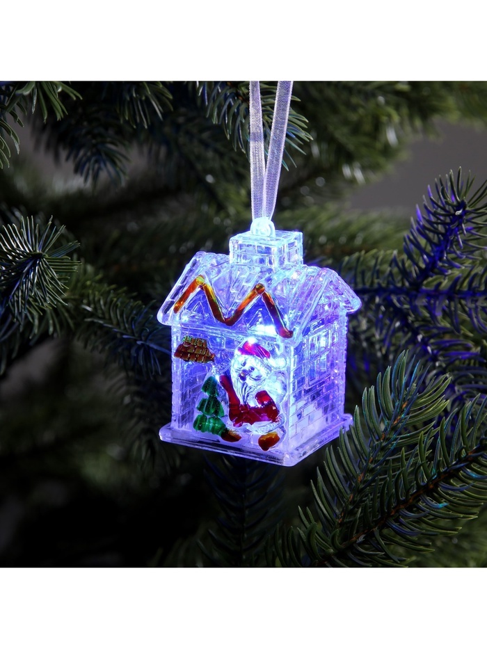 Ёлочная игрушка «Домик с Сантой», 7.7?11?6 см, 1 LED, от батареек, свечение тёплое белоеВопросы по товару