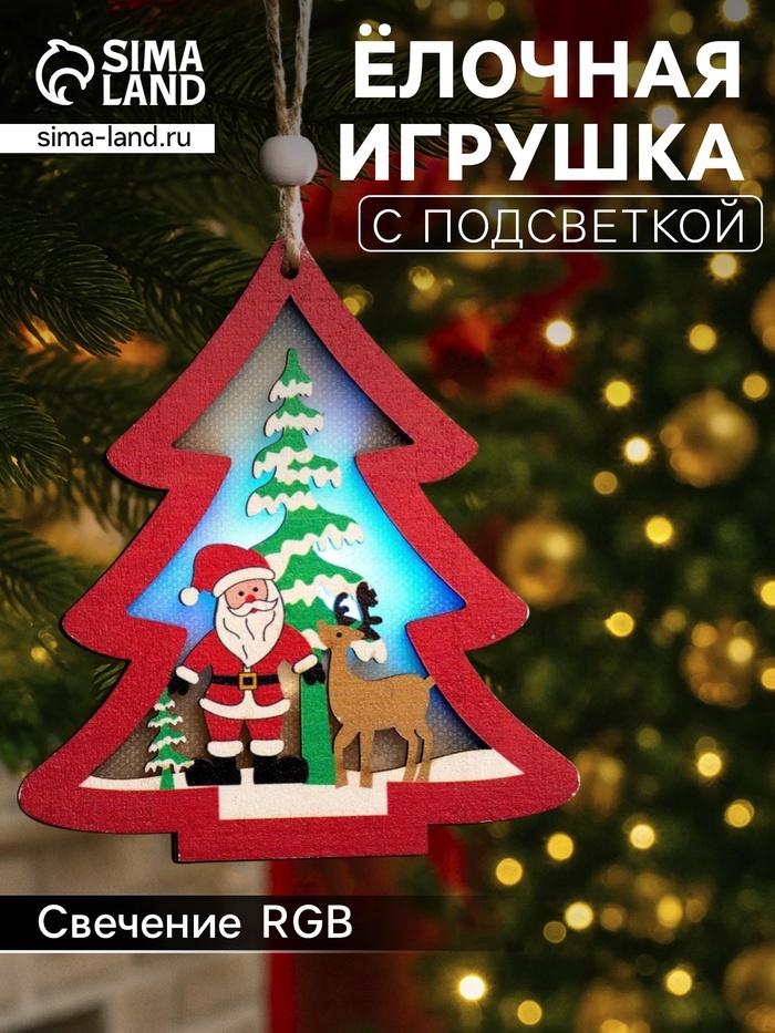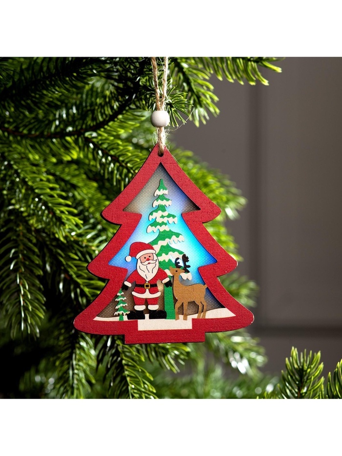 Ёлочная игрушка «Красная ёлочка с Дедом Морозом», 11?11?1.5 см, от батареек, свечение RGBВопросы по товару