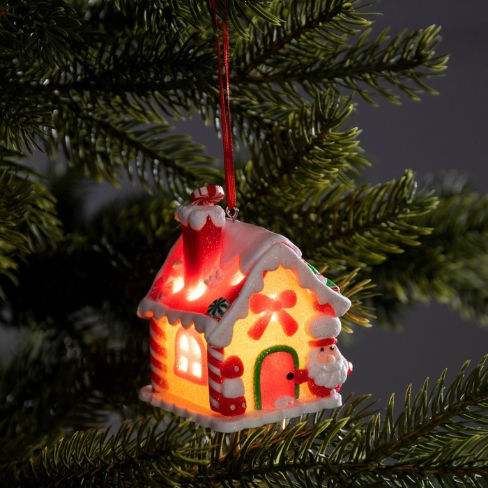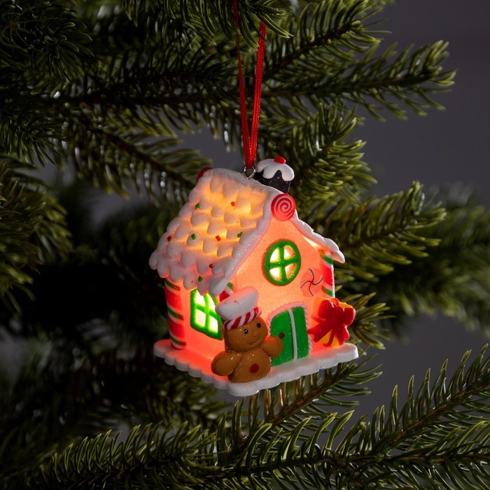 Ёлочная игрушка «Имбирный домик», 8.5?5.5?6 см, 1 LED, от батареек, свечение тёплое белоеВопросы по товару