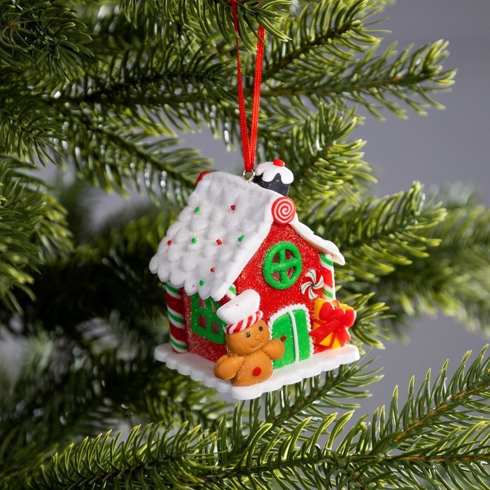 Ёлочная игрушка «Дом из конфет», 7.6?5.5?6 см, 1 LED, от батареек, свечение тёплое белоеВопросы по товару