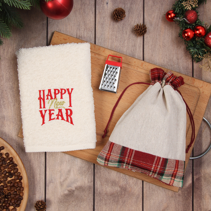 Набор в мешочке «Этель» Happy: полотенце 35?60 см, тёрка 7.7?3.7?3 смНабор в мешочке «Этель» Happy: полотенце 35?60 см, тёрка 7.7?3.7?3 смНабор в мешочке «Этель» Happy: полотенце 35?60 см, тёрка 7.7?3.7?3 см