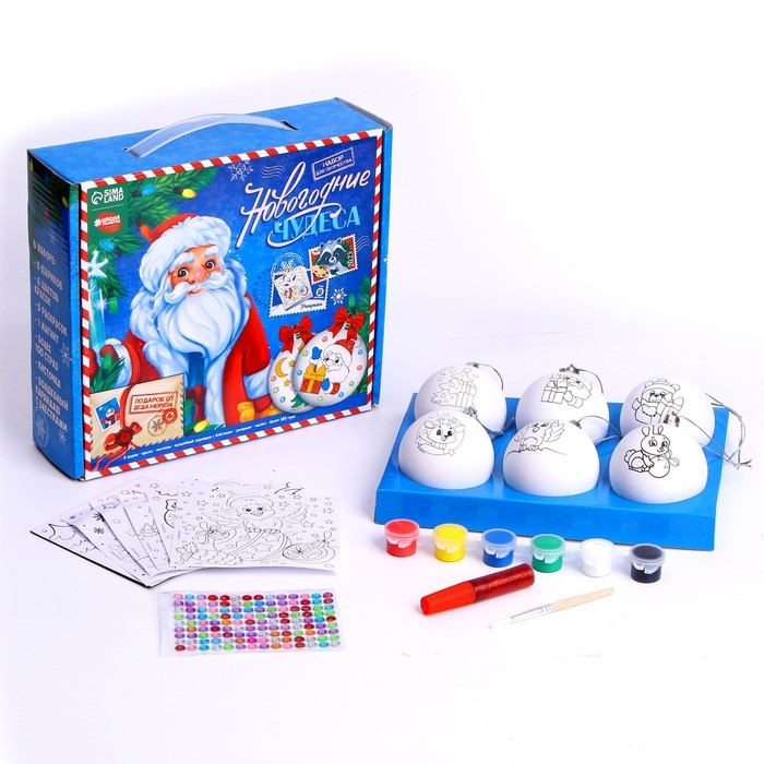Ёлочные шары под раскраску на новый год «Чудеса», 6 шт, краски, набор для творчества