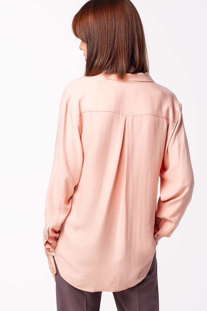 Состав: 55%Лиоцелл (Вис) 45%Вис Плотность: 145 Г/м2 Свободная блузка из премиальной вискозы и лиоцелла. Приятная на ощупь ткань пропускает воздух и поддерживает оптимальный микроклимат. Модель оснащен... Показать описаниеа отложным воротником и застежкой на пуговицы из натурального перламутра. На спинке изделия фирменный логотип бренда. Блуза будет одинаково хорошо смотреться и в повседневном наряде, и в образе для офиса.