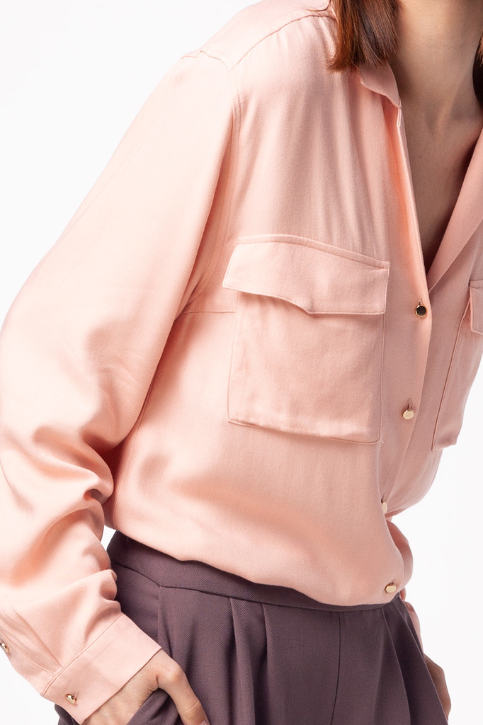 Состав: 55%Вис 45%Лиоцелл (Вис) Параметры модели на первом фото: Рост 172, бюст 88, талия 64, бедра 88 Блузка с имитацией карманов и удлиненными манжетами выполнена из премиальной вискозы и лиоцелла. ... Показать описаниеНа спинке изделия фирменный логотип бренда. Имитация карманов позволяет этому элементу выглядеть аккуратно без складок и фалд, которые вероятны на такой пластичной ткани.Застежка на золотистые пуговицы. Приятная на ощупь ткань охлаждает кожу в жаркую погоду. Отлично впишется в нестрогий офисный дресс-код или в расслабленном повседневном образе с джинсами.