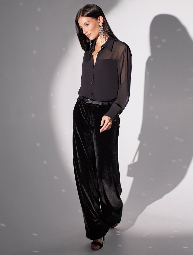Состав: 97%ПЭ 3%ПУ Плотность: 250 Г/м2 Элегантная блузка черного цвета создана для женщин, которые ценят стиль и комфорт каждый день. Полупрозрачный шифон в верхней части блузки придает образу легкост... Показать описаниеь и утонченность, подчеркивая индивидуальность в любой ситуации. Такая нарядная блузка моментально преобразит повседневный лук, делая его более выразительным и женственным. Плотная ткань блузки красиво струится по фигуре, подчеркивая женственность. Оригинальный крой и продуманная отделка позволяют сочетать блузку с брюками, юбками или джинсами — вы всегда будете выглядеть свежо и современно. Текстура ткани обеспечивает максимальное удобство, а полупрозрачная структура добавляет загадочности без излишней откровенности. Стильная модель подходит как для деловых встреч, так и для прогулок по городу или вечерних мероприятий. Благодаря универсальности фасона легко создаются новые комбинации в зависимости от настроения и случая.