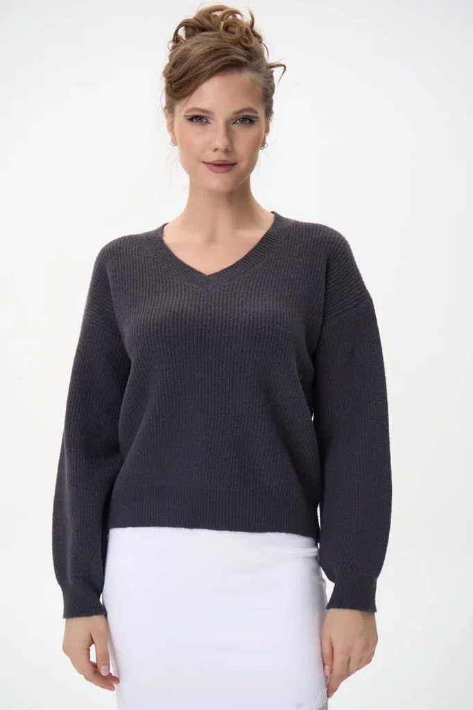 Состав: Хлопок – 50%, акрил – 50% Описание Пуловер из мягкой пряжи с V-образным вырезом Универсальный пуловер, который станет базой вашего осенне-зимнего гардероба. Модель выполнена из мягкой смесово... Показать описанией пряжи с высоким содержанием хлопка — приятной к телу и дышащей. Размер: единый (подходит на 44–52). Благодаря свободному силуэту и эластичной фактуре трикотажа, пуловер комфортно садится по фигуре разного типа — подчёркивает линию плеч, не обтягивает и создаёт аккуратный силуэт. Детали изделия: Прямой свободный силуэт; V-образный вырез горловины; Длинные рукава с лёгким объёмом; Эластичная резинка по низу и манжетам; Мягкая, комфортная вязка средней плотности.