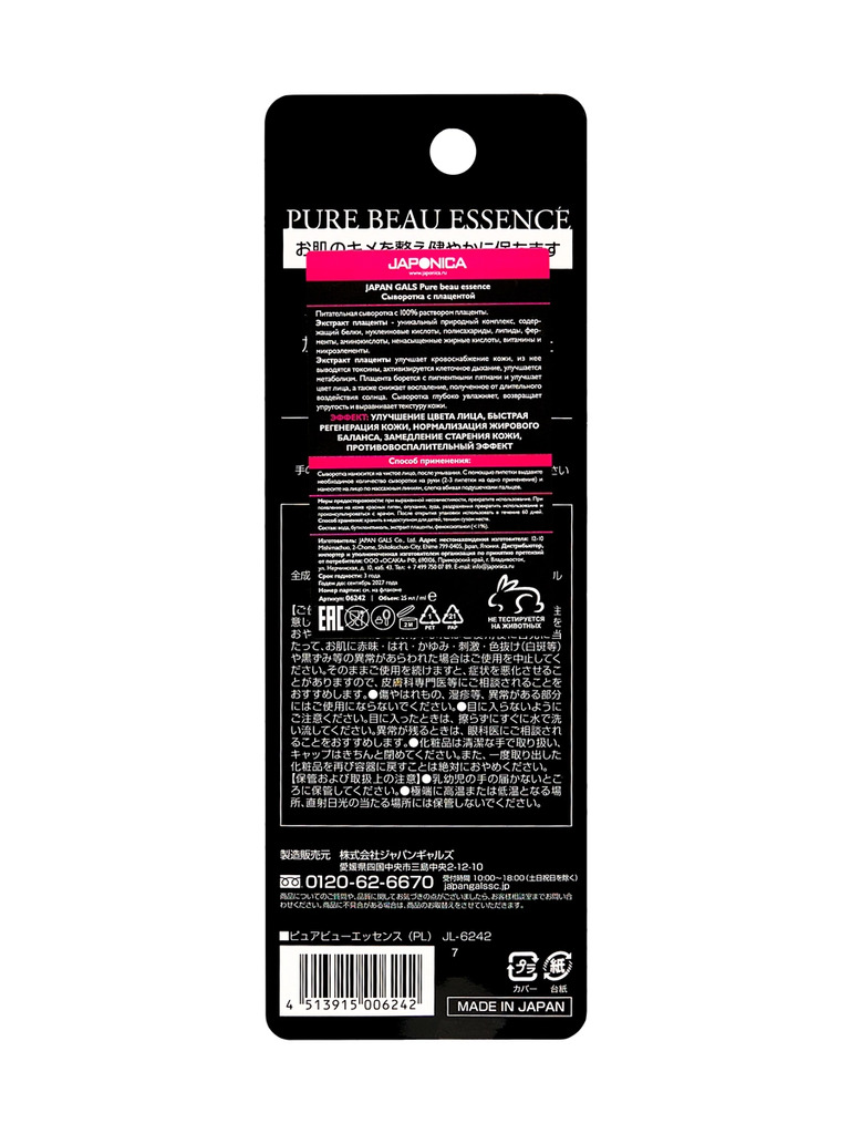 JAPAN GALS Pure beau essence Сыворотка с плацентой 25 млВопросы по товару