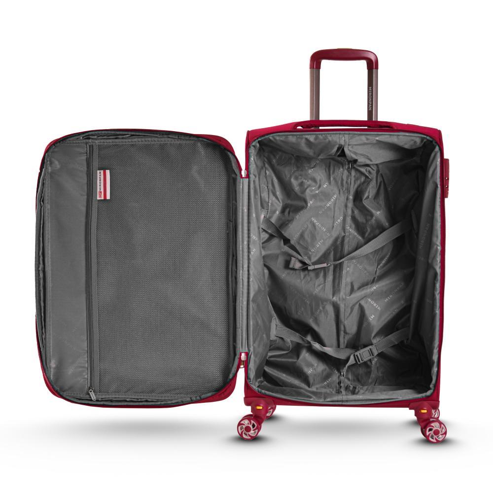 Комплект из 3-х чемоданов  MIRONPAN универсальная модель с возможностью увеличения объема. Модель в бордовом цвете обладает облегченным весом и выполнен из высокотехнологичного полиэстера - современно... Показать описаниего прочного материала, для которого характерны отличная износостойкость и влагостойкость. Основное отделение закрывается на молнию с 2 бегунками. Внутри 2 отделения: одно - с  ремнями-фиксаторами, другое - с тканевой перегородкой на молнии и вместительным карманом-сеткой на молнии. На лицевой стороне предусмотрено дополнительное отделение и  карман закрываются на  молнии. Выдвижная ручка фиксируется в 2-х положениях. Сверху и сбоку предусмотрены дополнительные ручки для удобства переноски. 4 двойных колеса несъемные вращаются на 360°, позволяя чемодану двигаться легко и плавно. Чемодан оснащен кодовым замком. Характеристики модели: - объем . L- 98,4 л., M- 59,6 л., S - 37,5 л.; - 2 отделения; - 4-е двойных  колеса  со свободным вращением на 360°; несъемные - телескопическая ручка (фиксация в 3-х положениях); - кодовый замок; - возможность увеличения объёма. L – ширина - 50 см; высота - 82 см; глубина - 24 см(с расширением 27 см), вес - 3,9 кг;  29 дюйма. M– ширина - 42 см; высота - 71см; глубина - 20 см (с расширением 22 см), вес – 3,3 кг; 27 дюйма. S – ширина - 36 см; высота - 58 см; глубина - 18 см (с расширением 20 см), вес – 2,7 кг; 23 дюйма.