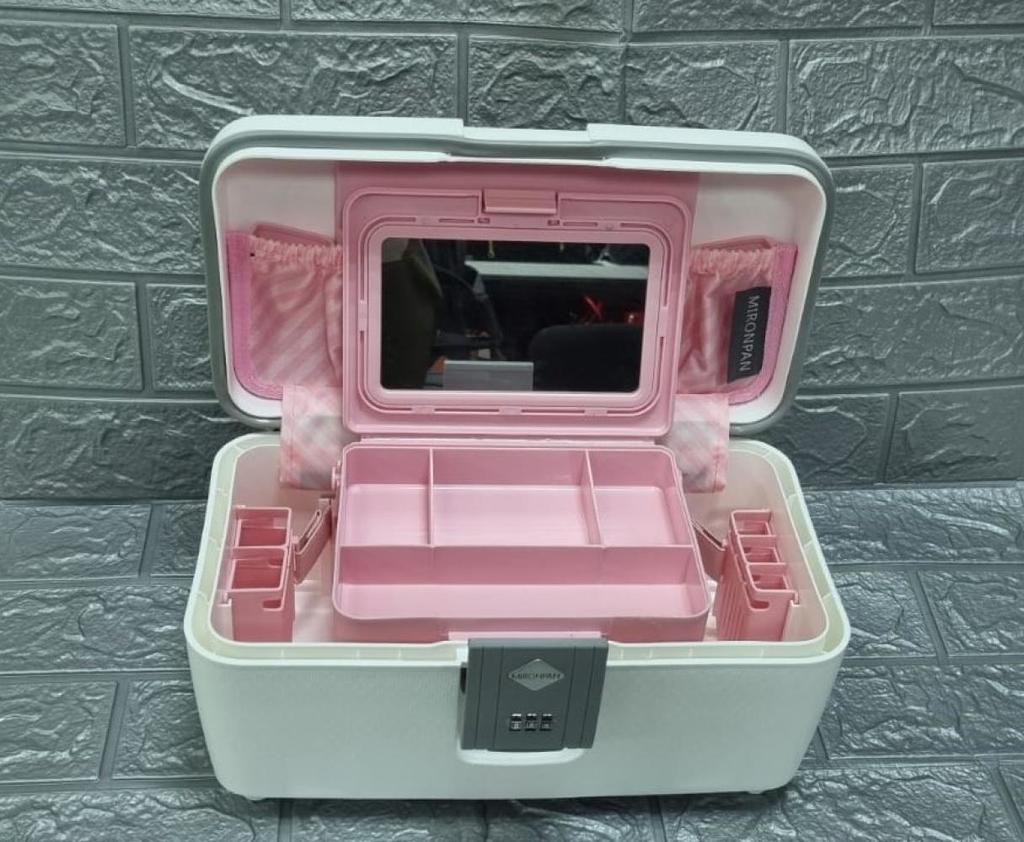 Бьюти-кейс MIRONPAN выполнен из полипропилена - современного материала, для которого характерны высокая ударопрочность, стойкость к перепадам температур, отличная износостойкость. Аксессуар закрываетс... Показать описаниея на застёжку-защелку.  Внутри находятся одно основное отделение и  небольшой бокс с зеркалом для косметики. На тыльной стороне предусмотрена резинка, позволяющая крепить аксессуар на ручку чемодана.  Сверху ручка для удобства переноски. Дно аксессуара защищают 4 ножки. Вес 1300 Размер 33 х 18 х 16 (длина х высота х глубина)