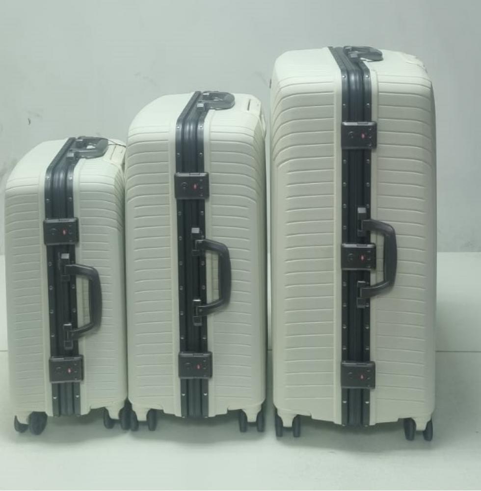 Комплект из 3-х чемоданов полипропилен алюминийКомплект из 3-х чемоданов полипропилен алюминийКомплект из 3-х чемоданов полипропилен алюминий
