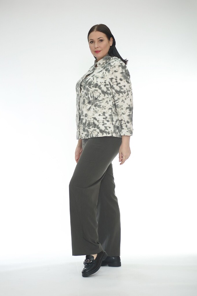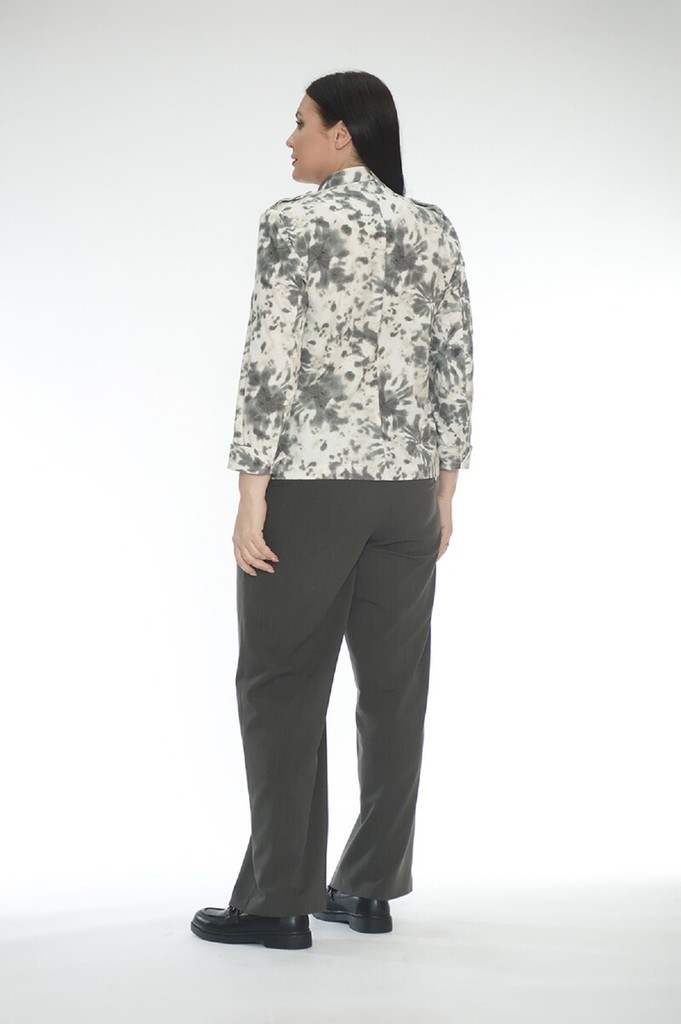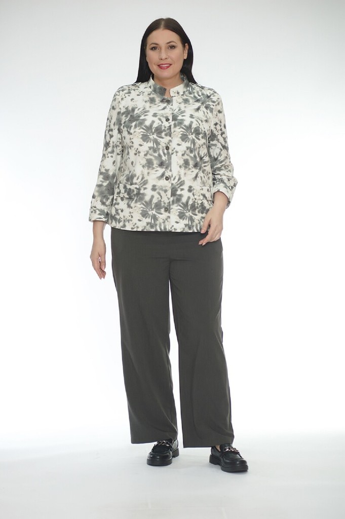 Жакет с акварельным серо-белым цветочным принтом, выполненный из плотной ткани, имеет классический прямой крой и воротник-стойку. Длина жакета до бедер, что придает образу элегантности и подходит для ... Показать описаниеразличных типов фигур. Он отлично вписывается в повседневный и деловой стиль, придавая образу свежести благодаря принту. Совет стилиста: этот жакет прекрасно сочетается с однотонными брюками или юбками нейтральных оттенков, чтобы сбалансировать яркий принт.