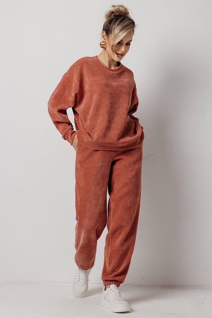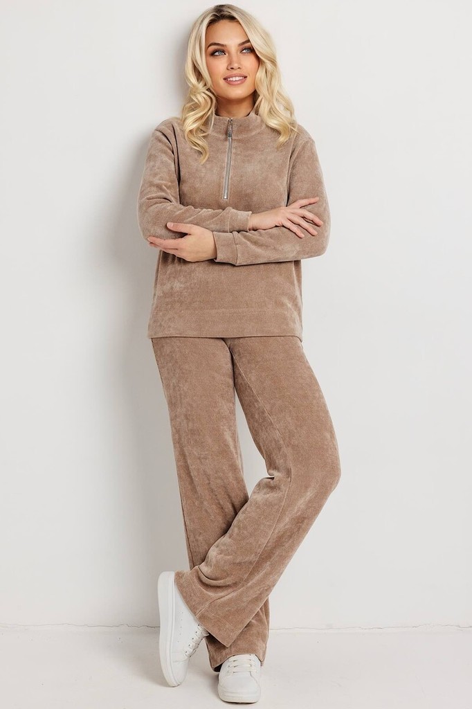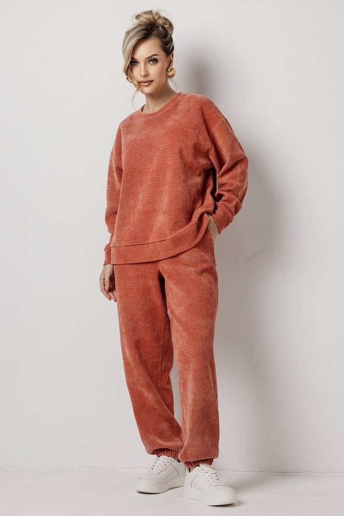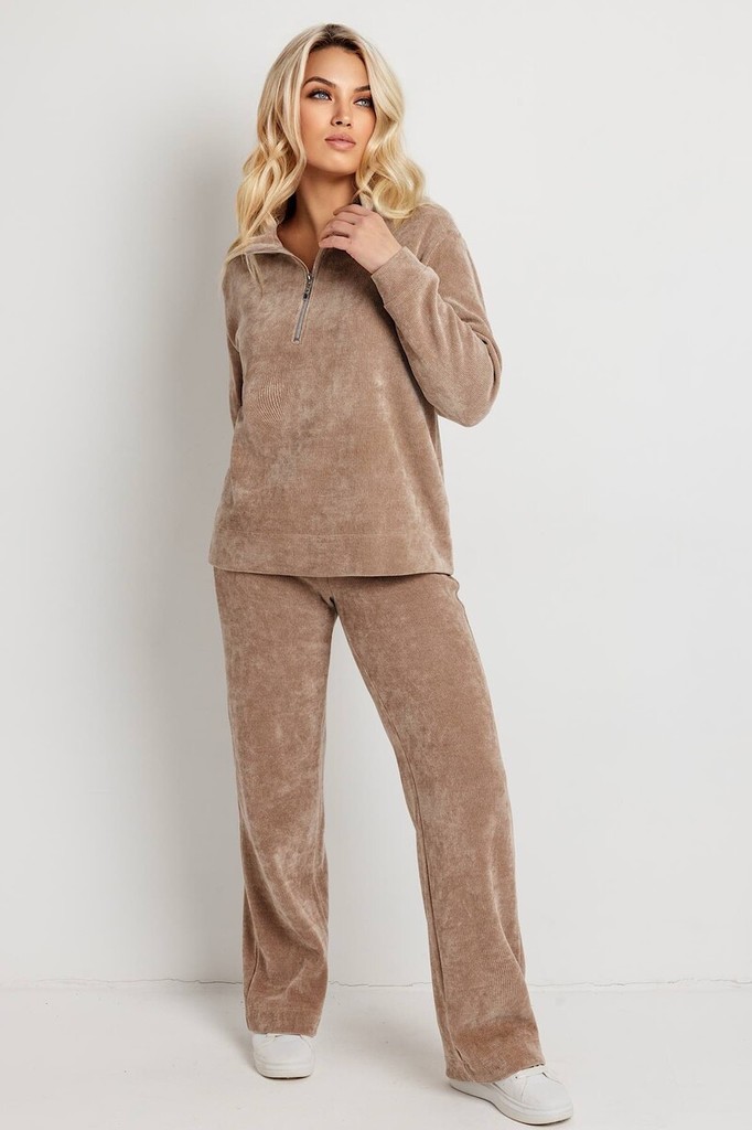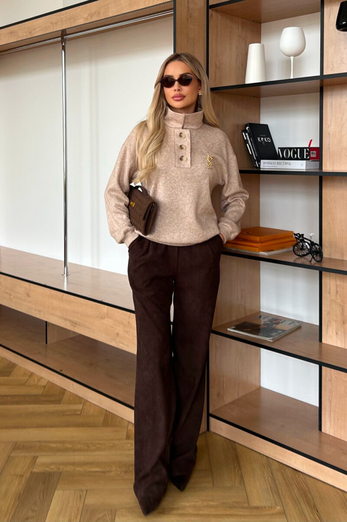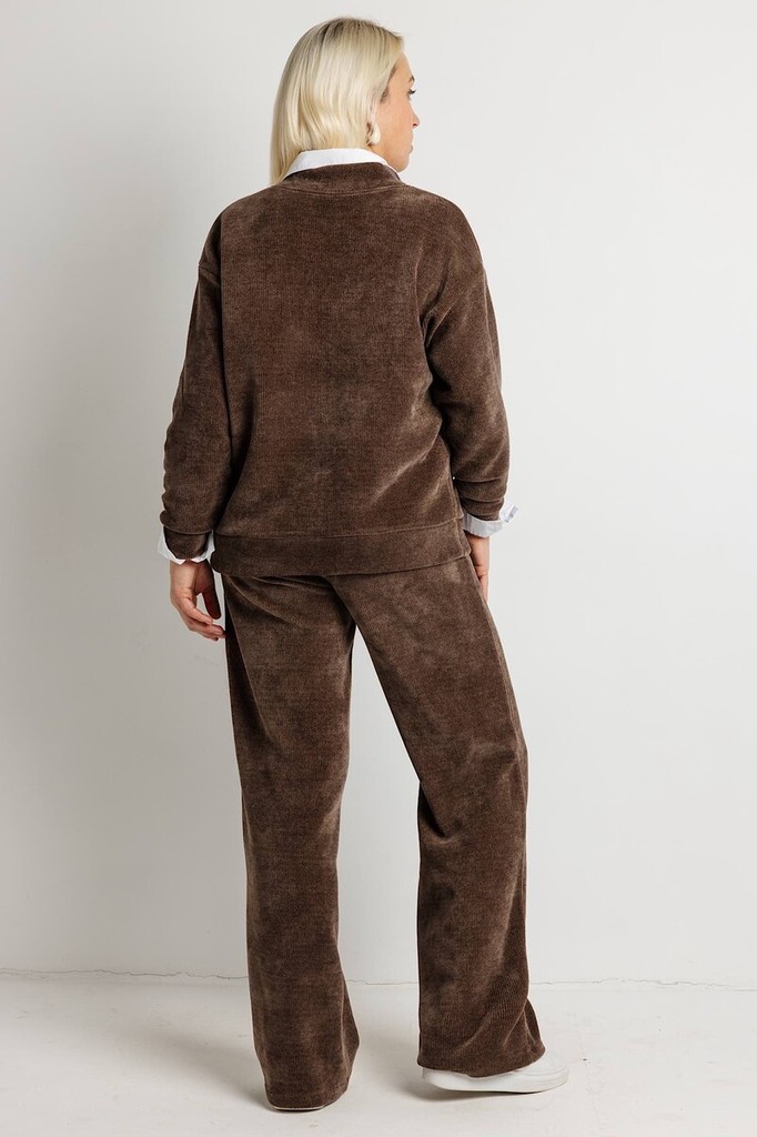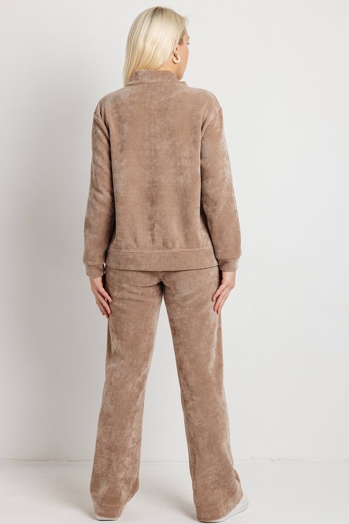 Костюм ЧАРУТТИ — ваш безупречный спутник для полета в бизнес-классе в солнечную Италию. Элегантные брюки из благородного вельвета и бомбер создают образ, который говорит о вашем статусе еще до посадки... Показать описание в самолет. Образ, в котором вы будете чувствовать себя комфортно во время долгого перелета и при этом безупречно выглядеть при выходе из аэропорта. Сойдите с трапа готовой к деловым встречам или прогулкам по римским улочкам. Комплект состоит из брюк прямого кроя и бомбера с карманами. Брюки с акцентными лампасами на резинке, есть карманы. Посадка высокая на талии.