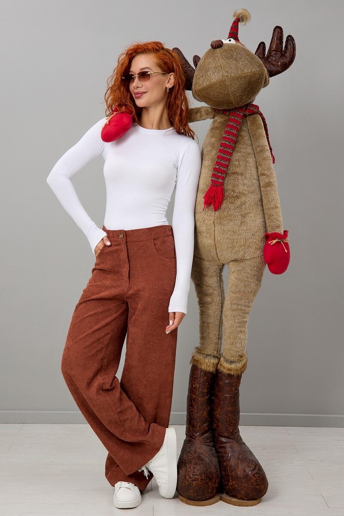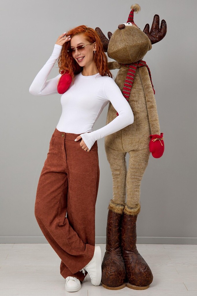 При создании образа использовался Джемпер "Барбара" (беж) Б8298 Артикул: Б8269. Ткань: вельвет. Состав: 60% п/э, 35% вискоза, 5% эластан. Цвет: молочный. Вид застежки: отсутствует. Силуэт: прямой. Кар... Показать описаниеманы: есть. Длина изделия по боковому шву: 46-48/ 95 см, 50-52/ 96 см, 54-56/ 97 см. Рост модели: 168 см. Классические брюки из вельвета помогут Вам в создании изящных образов. По талии брюки на резинке, что позволяет добиться комфортной посадки по фигуре. В боковых швах есть карманы. Брюки подойдут для офисного и повседневного образа. Они не сковывают движений и выглядят стильно и лаконично, Вам останется только подобрать верх. Уход за изделием: ручная стирка до 30 градусов; нельзя отбеливать; деликатный отжим; гладить при t не более 110С; гладить с изнанки. *Допуск отклонения длины при массовом производстве 1-3 см является нормой.