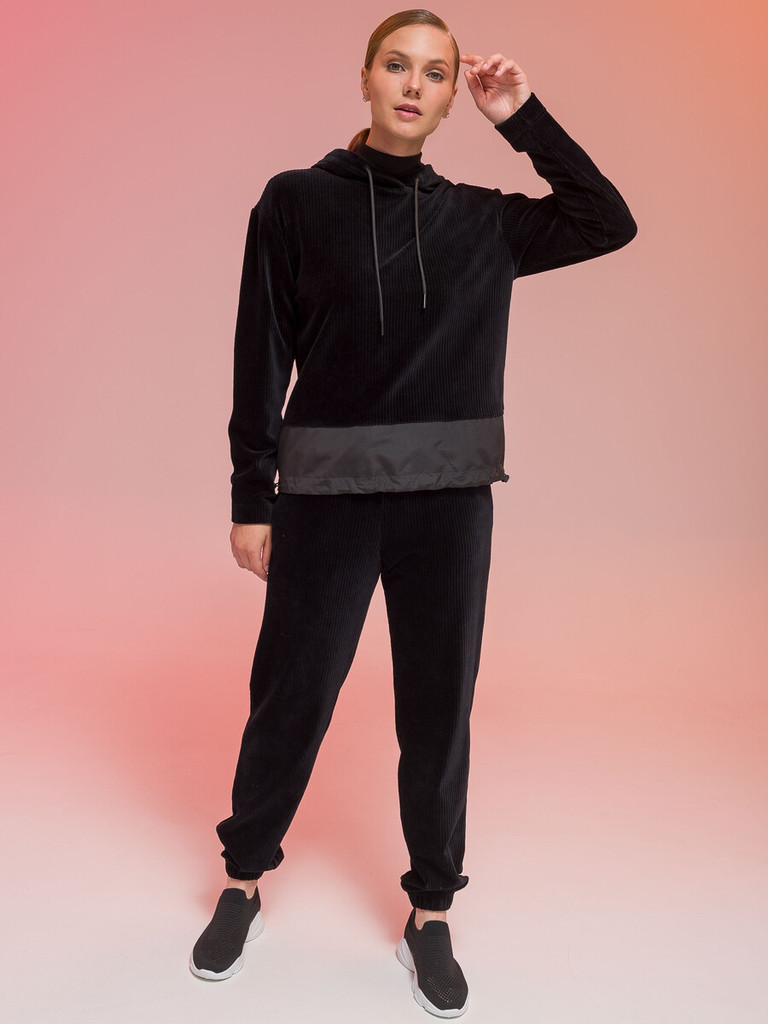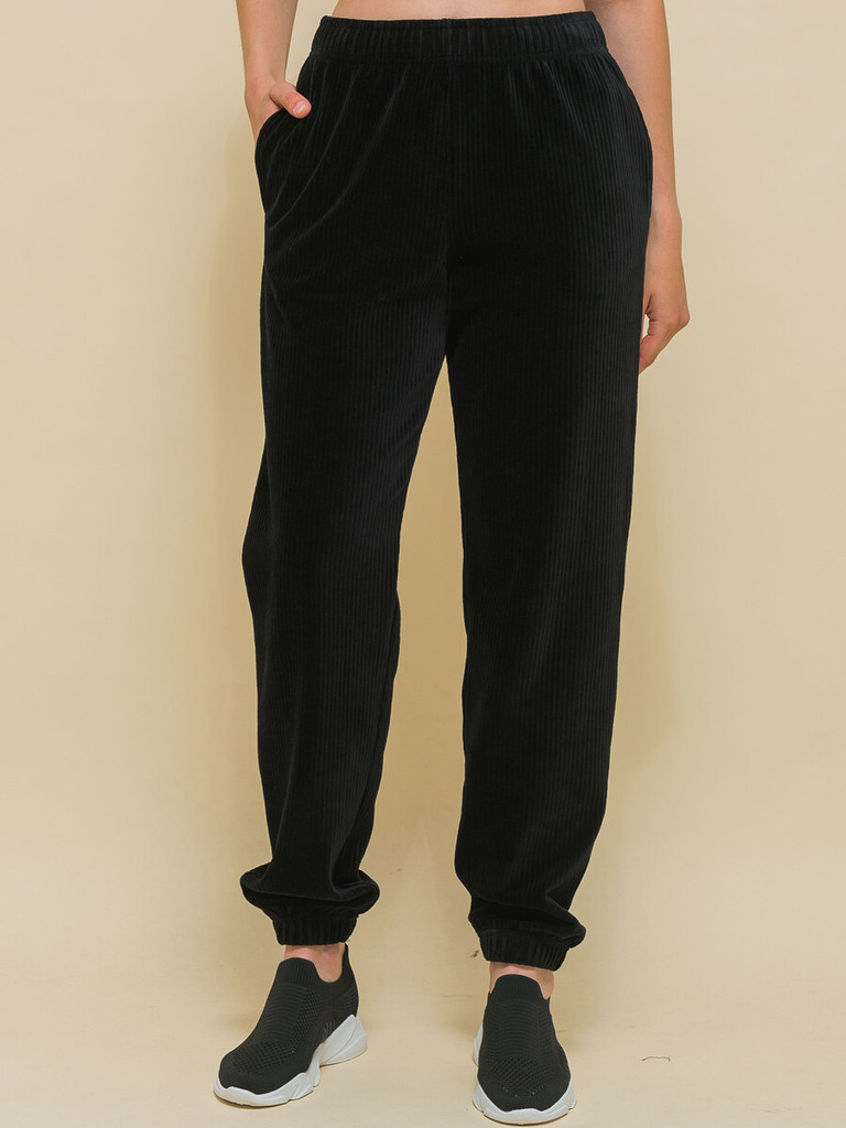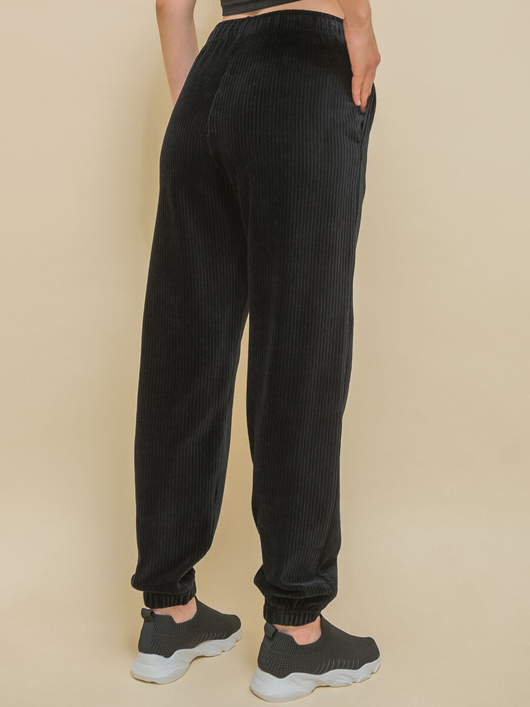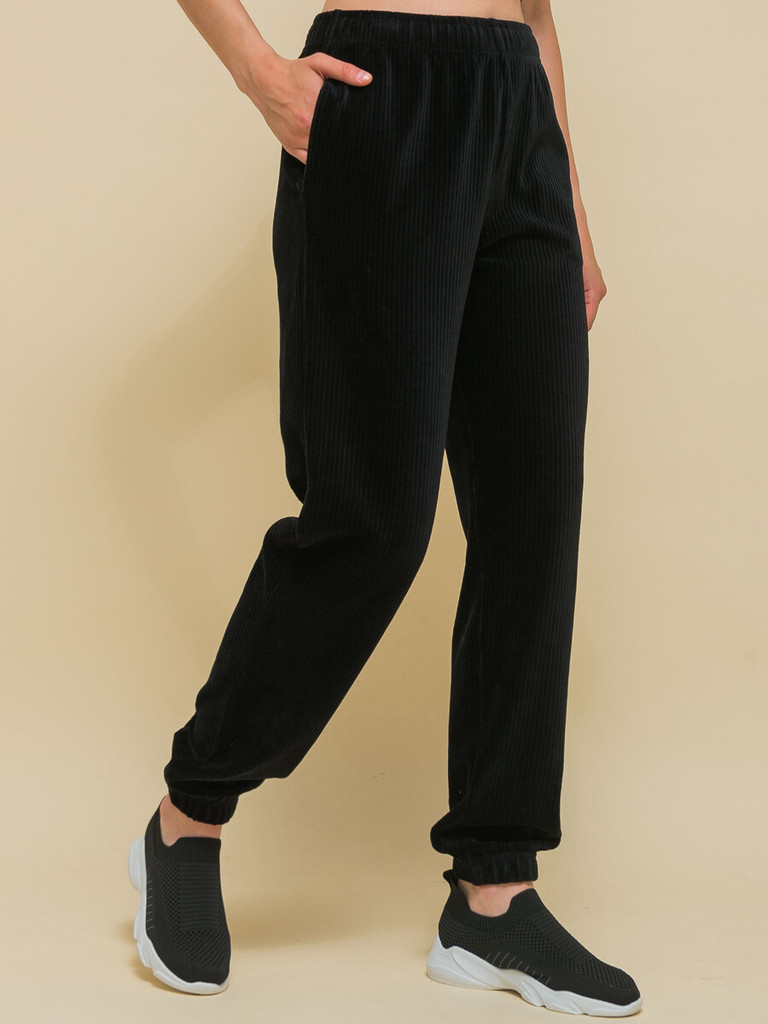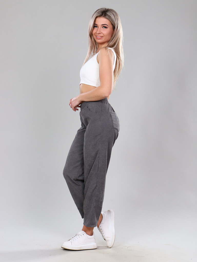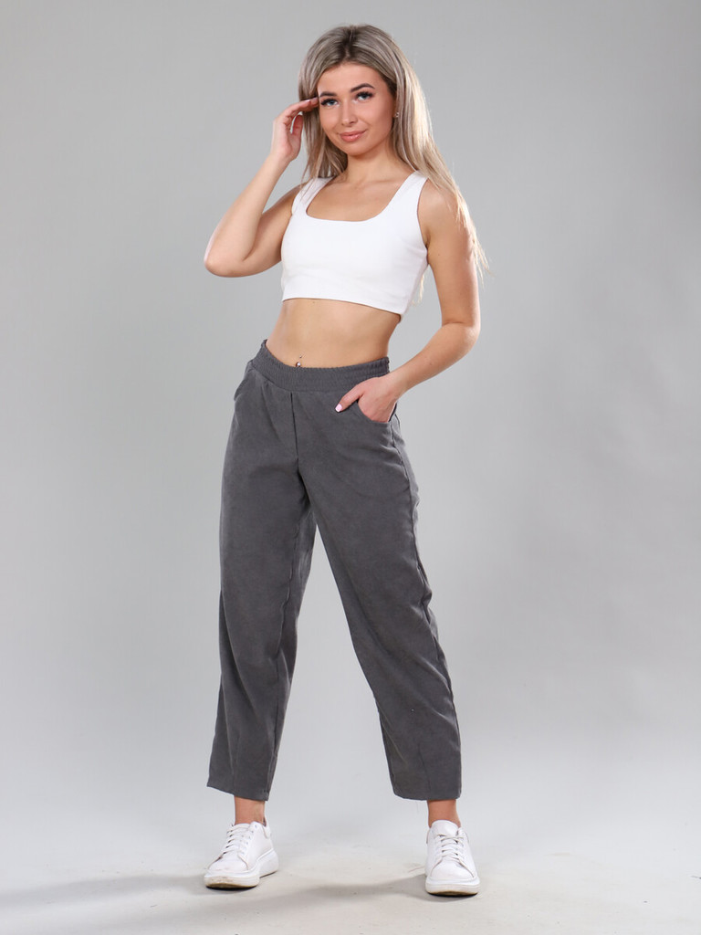 Женские брюки-джоггеры из актуального трикотажного вельвета. Мягкие брюки свободного кроя не стесняют движений и дарят вам ощущение комфорта. Штаны с высокой посадкой делают красивый акцент на талии и... Показать описание визуально удлиняют ноги. По низу узкие манжеты — один из модных трендов. В поясе мягкая широкая резинка — не давит и не перекручивается. Брюки однотонные, без принта. Неприхотливы в уходе, не вытираются. В составе ткани преобладает качественный хлопок — джоггеры отлично пропускают воздух и приятны на ощупь. Полиэстер и эластан помогают изделию сохранять прекрасную форму в течение долгого времени. Трикотажные брюки представлены в базовых цветах: черном и сером. Они универсальны, легко сочетаются с различными джемперами и футболками. Размерный ряд: XS (42): S (44): M (46): L (48): XL (50). Идеальные брюки для женщин, девушек, девочек-подростков. Подходят для работы, учебы, отдыха, прогулок. Такие штаны можно носить зимой, весной и осенью (демисезон), а также в прохладную погоду летом. Хлопковые брюки — хороший и недорогой подарок для мамы, сестры или подруги на любой праздник.