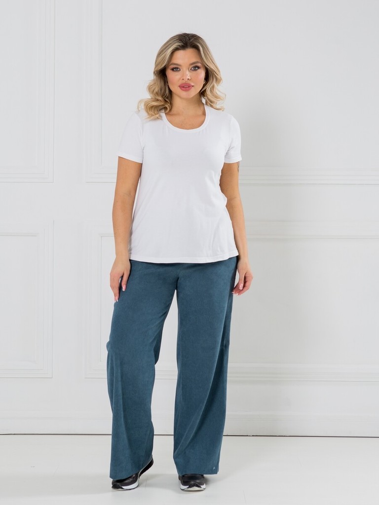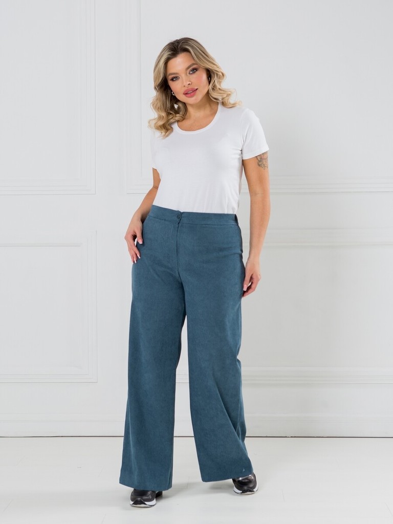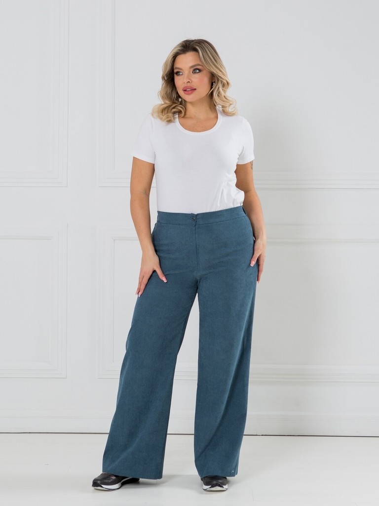 Удобные брюки-палаццо, выполнены из эластичного микровельвета. Брюки с высокой посадкой, с притачным поясом с застежкой на замок-молнию и кнопку по переду. Пояс брюк на широкой резине обеспечивает удо... Показать описаниебство и комфорт при ношении. Брюки без подклада. Длина по внешнему шву (с поясом) в 48 р-ре – 108 см. в 64 р-ре – 113 см., длина по внутреннему (шаговому) шву в 48 р-ре – 82 см. в 64 р-ре – 83 см. На фото представлены в комплекте с жакетом арт. 1333-1 серо-голубой