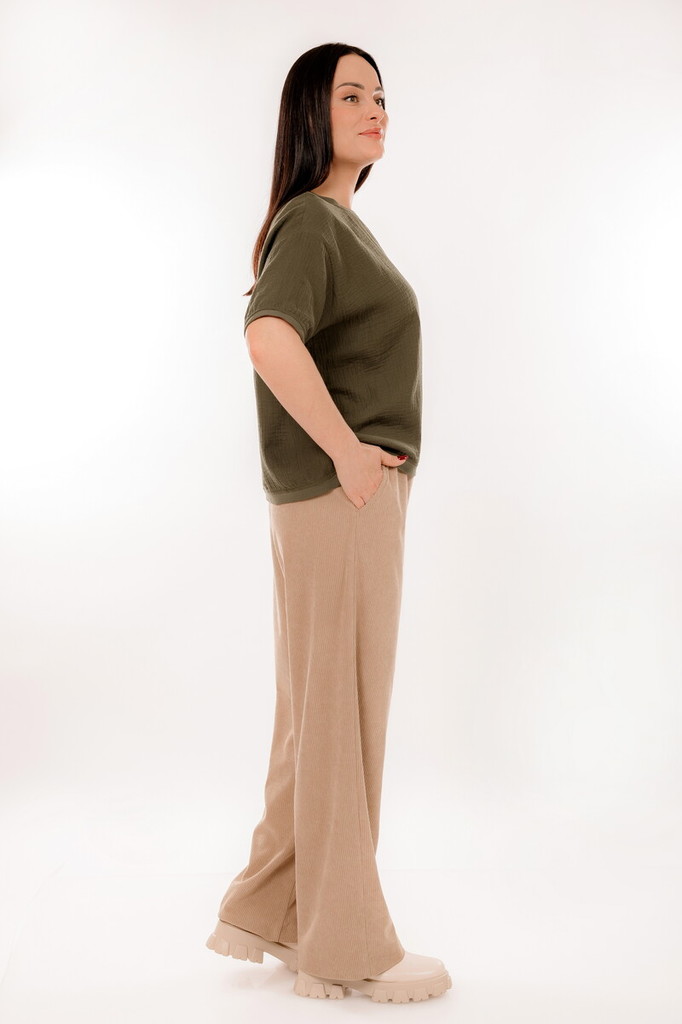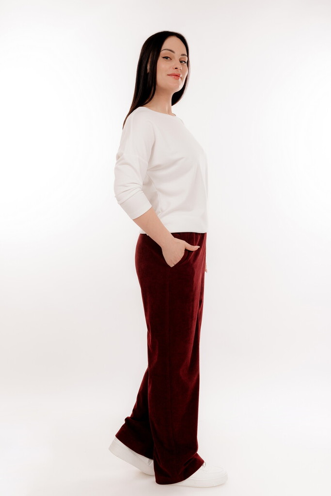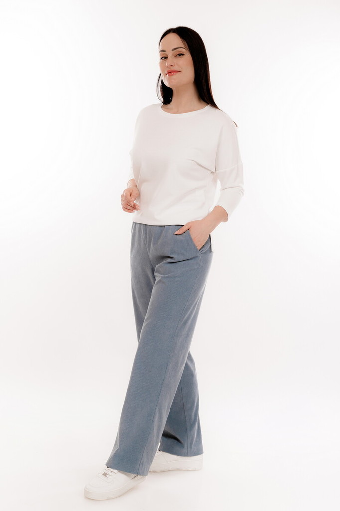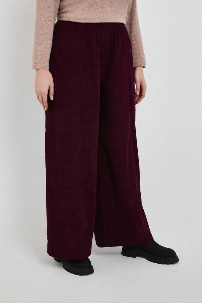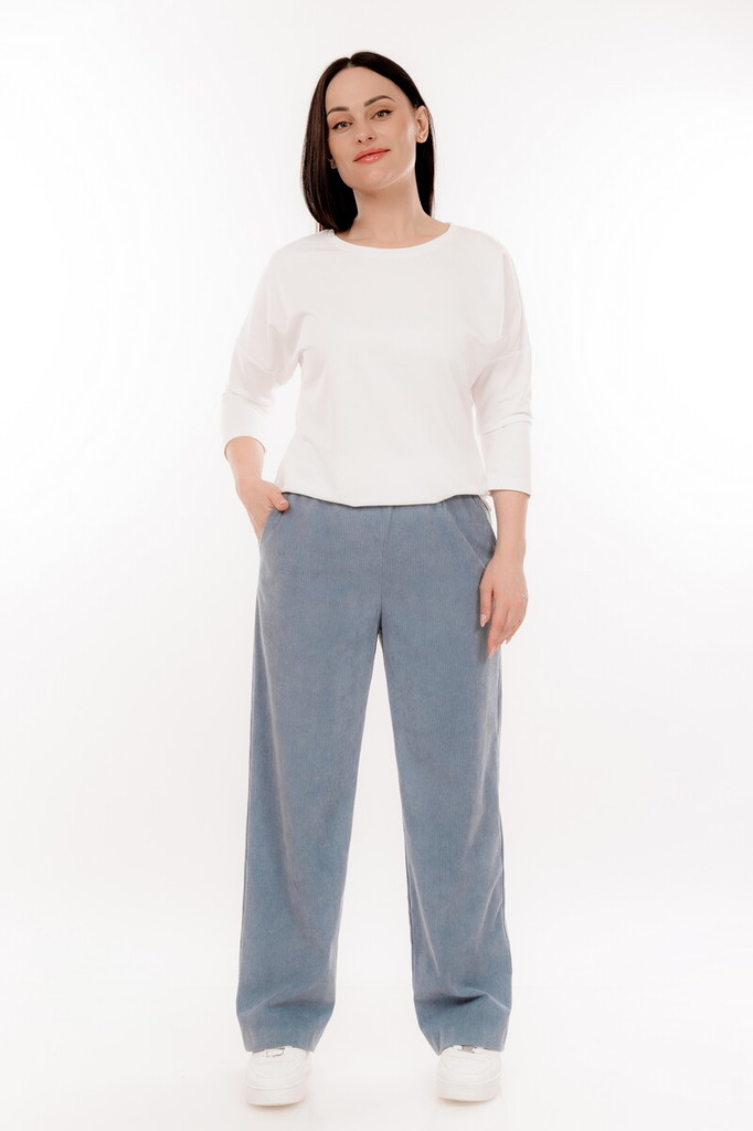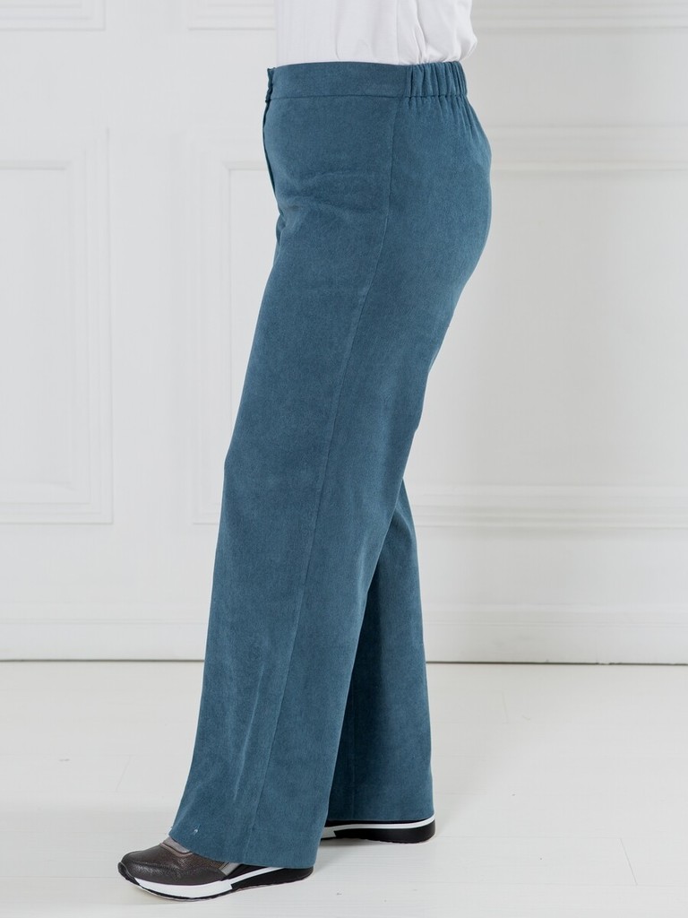 Брюки вельветовые свободного силуэта с боковыми карманами. Удобный эластичный пояс не доставляет дискомфорта. Брюки можно носить дома, использовать для отдыха и прогулок. Они не деформируются при носк... Показать описаниее, не мнутся и не просвечивают. Можно носить в офис, школу, с каблуком или с кроссовками, создавая модные образы. Брюки прекрасно подойдут для отпуска в сочетании с любым верхом, в том числе с рубашкой, которая составляет костюм. Благодаря оптимальному волокнистому составу модель проста в уходе.