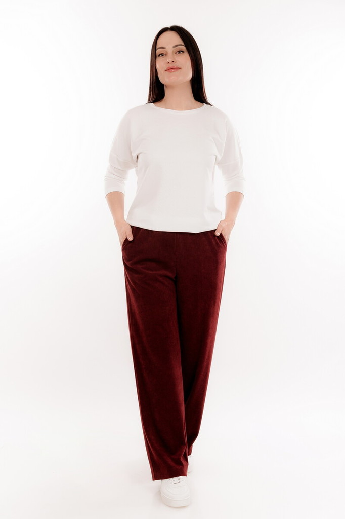 Брюки из мягкого тактильно-приятного трикотажного вельвета. Хлопковая изнанка. Идеальная посадка. Без карманов. Материал - трикотажный вельвет приятен к телу, мягко ложится по любой фигуре, не вытягив... Показать описаниеается, не затирается в процессе эксплуатации. Комфортная посадка дарит уверенность и ощущение свободы. Можно сочетать с блузкой арт. 4370/07 Рост модели 164 см. Длина изделия по боковому шву 44р-107см 46р-107см 48р-107см 50р-109см 52р-109см 54р-109см 56р-109см.