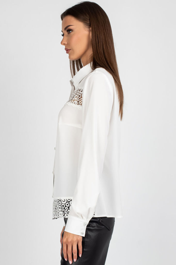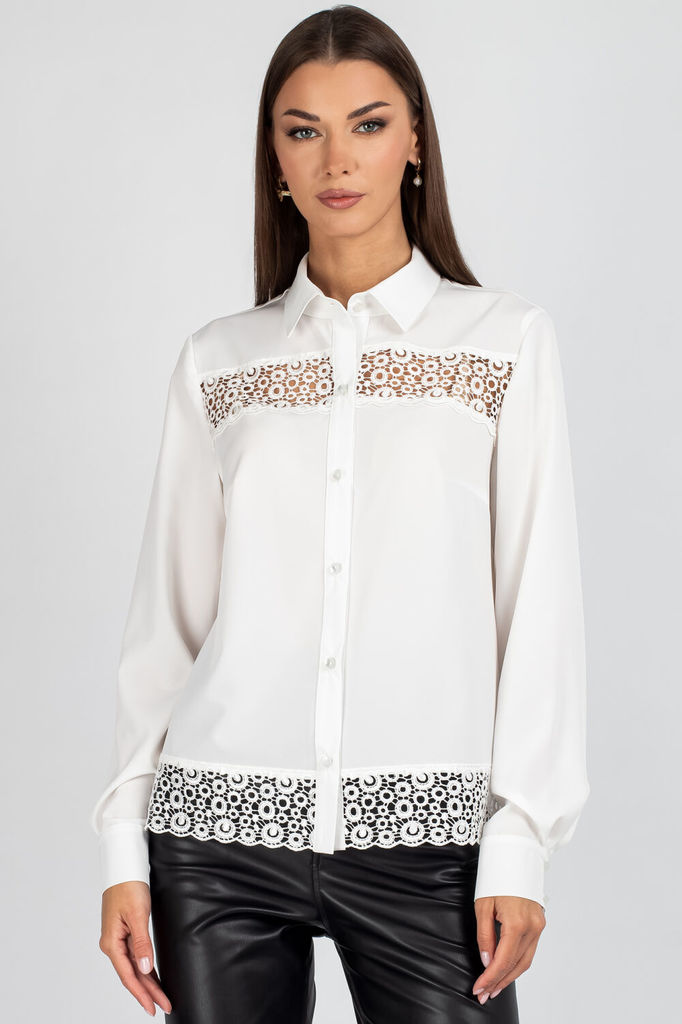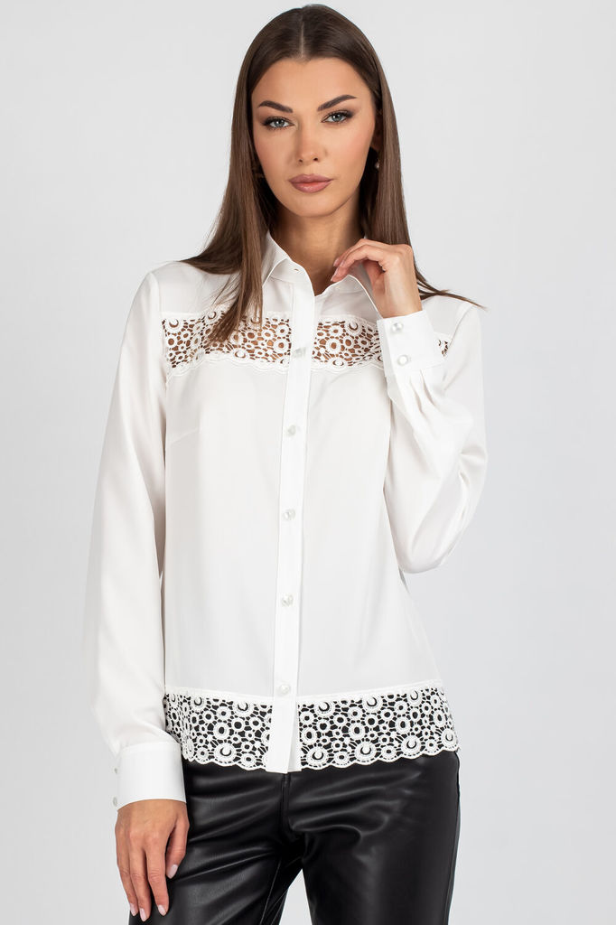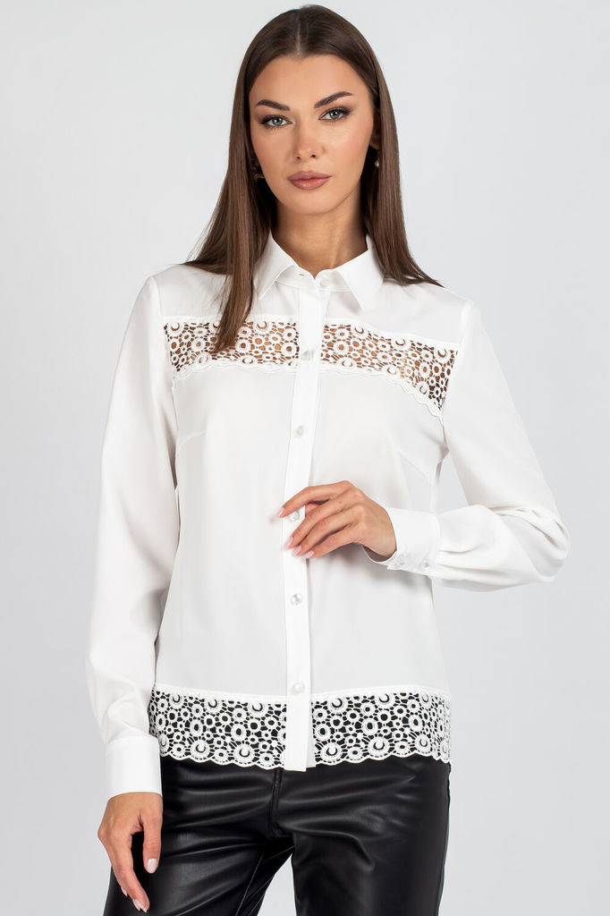 Состав: Вискоза-5%; ПЭ-92%; Спандекс-3%; Сезон: Весна Рост: 164 Страна бренда: Беларусь Состав: Вискоза-5%; ПЭ-92%; Спандекс-3%; Женская блузка полуприлегающего силуэта, сочетающая строгость кроя с из... Показать описаниеысканными акцентами. Передняя часть c нагрудными выточками, обеспечивающими комфортную посадку. Центральная бортовая застёжка — на 6 или 7 пуговиц (в зависимости от размера), придаёт образу классическую завершённость. Особое внимание привлекает кружево, изящно нашитое в верхней и нижней части переда — оно добавляет лёгкости и утончённости, делая блузку особенно женственной. Спинка цельнокроеная, без дополнительных швов, что подчёркивает чистоту силуэта. Рукава втачные, с элегантной линией плеча. Низ рукава оформлен притачной манжетой, застёгивающейся на две пуговицы — аккуратный акцент, подчёркивающий запястья и гармонирующий с кружевными деталями. Воротник рубашечного типа с отрезной стойкой — строгий, но изящный элемент, который придаёт изделию архитектурную чёткость и завершённость. Его форма удачно балансирует между классикой и романтичным стилем. Уход: бережная стирка при температуре не выше 30°С.