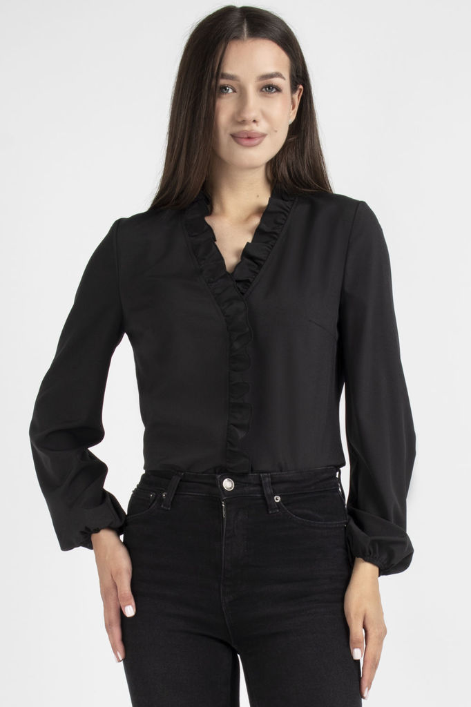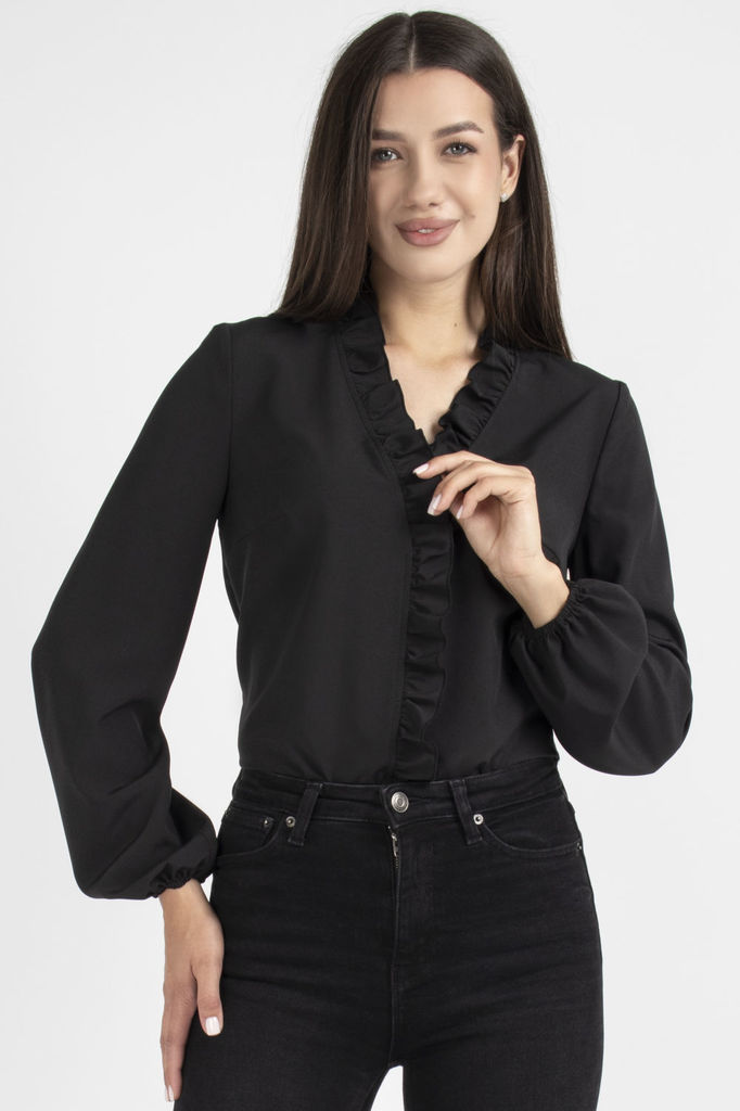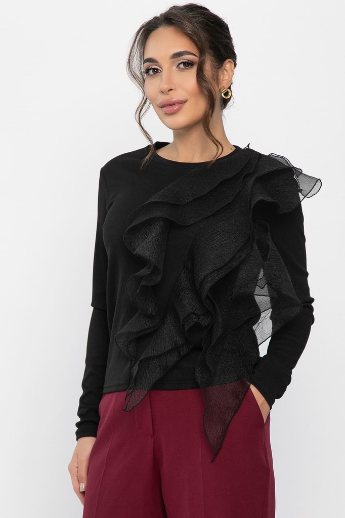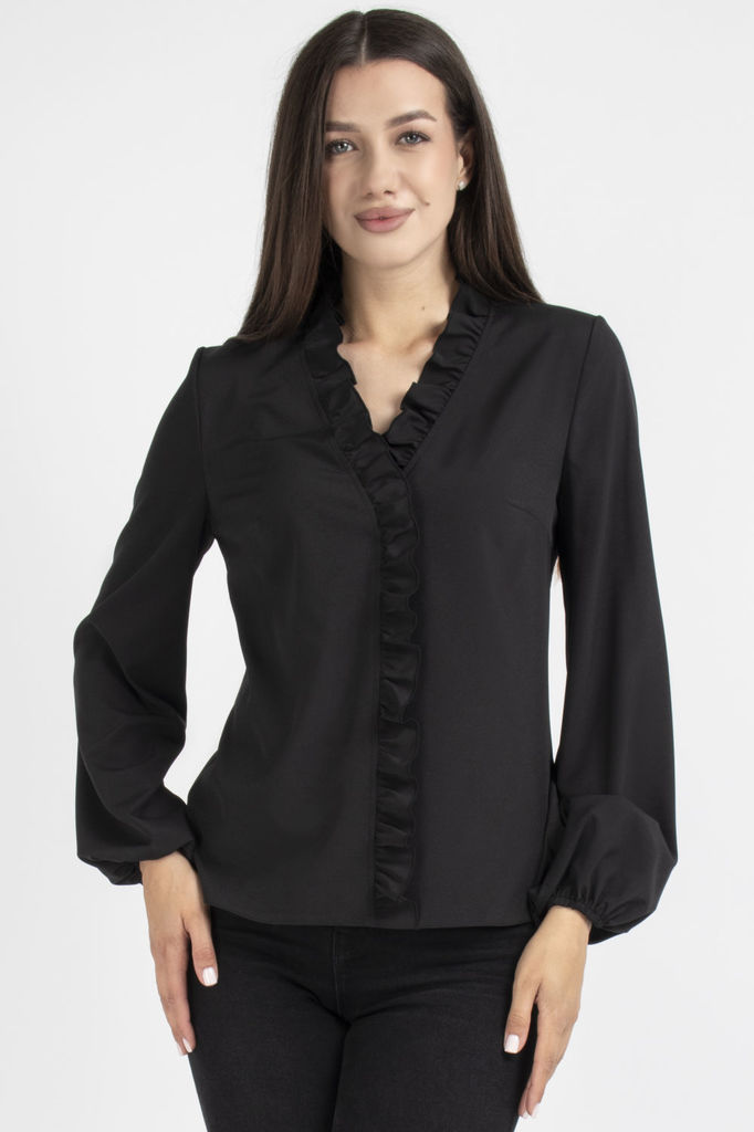 Состав: ПЭ-97%; Спандекс-3%; Сезон: Осень-Зима Рост: 164 Страна бренда: Беларусь Состав: ПЭ-97%; Спандекс-3%; Блузка полуприлегающего силуэта, с втачным рукавом. Застежка центральная на петли и пугови... Показать описаниецы. Горловина с воротником рубашечного типа с отрезной стойкой. По линии груди вытачки. Рукав длинный с тремя притачными воланами разной длины. Фурнитура может меняться в зависимости от наличия. Длина по спинке: 66см Длина рукава: 62см