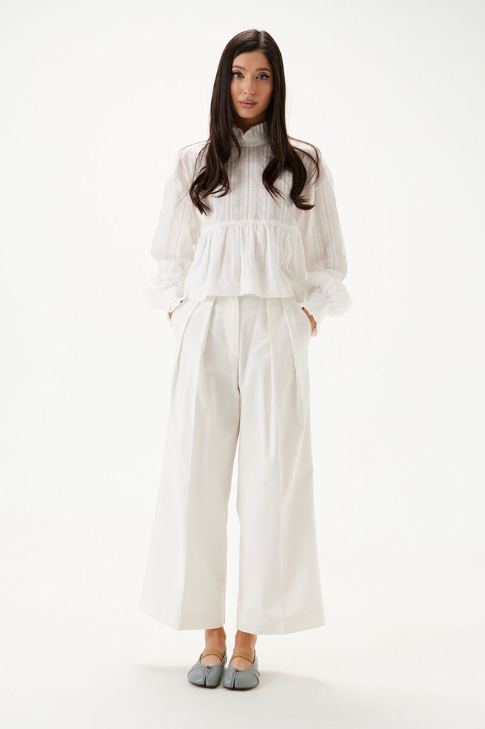 Состав: Хлопок-100%; Сезон: Весна Рост: 170 Страна бренда: Беларусь Состав: Хлопок-100%; Блуза свободного кроя, силуэт "трапеция". Выполнена из хлопкового полотна. Воротник-стойка с рюшей по верхнему ... Показать описаниесрезу. По стороне спинки разрез с застежкой на навесную петлю и пришивную пуговицу. Линия плеча спущенная. Рукав втачной, с манжетой с рюшей, застегивающаяся на пуговицы. Верхняя часть лифа со средним швом по спинке. Нижняя часть блузки-рюша с мягким подгибом по низу. Длина рукава 60 см. Длина спинки 52 см