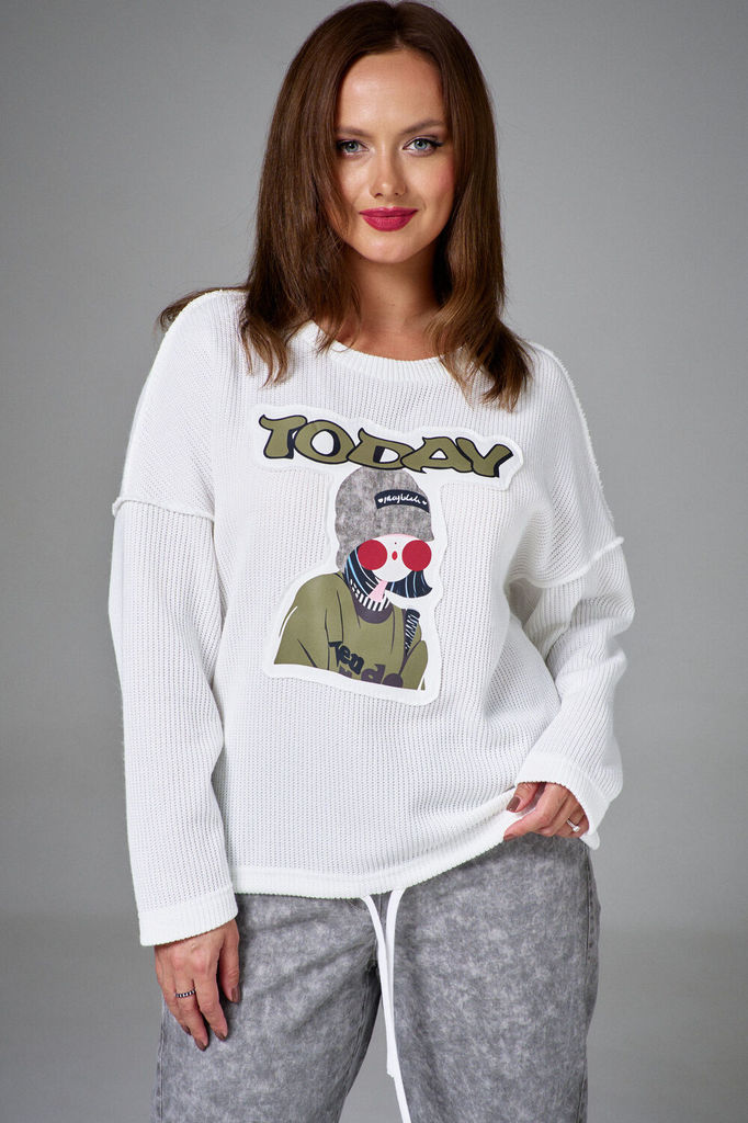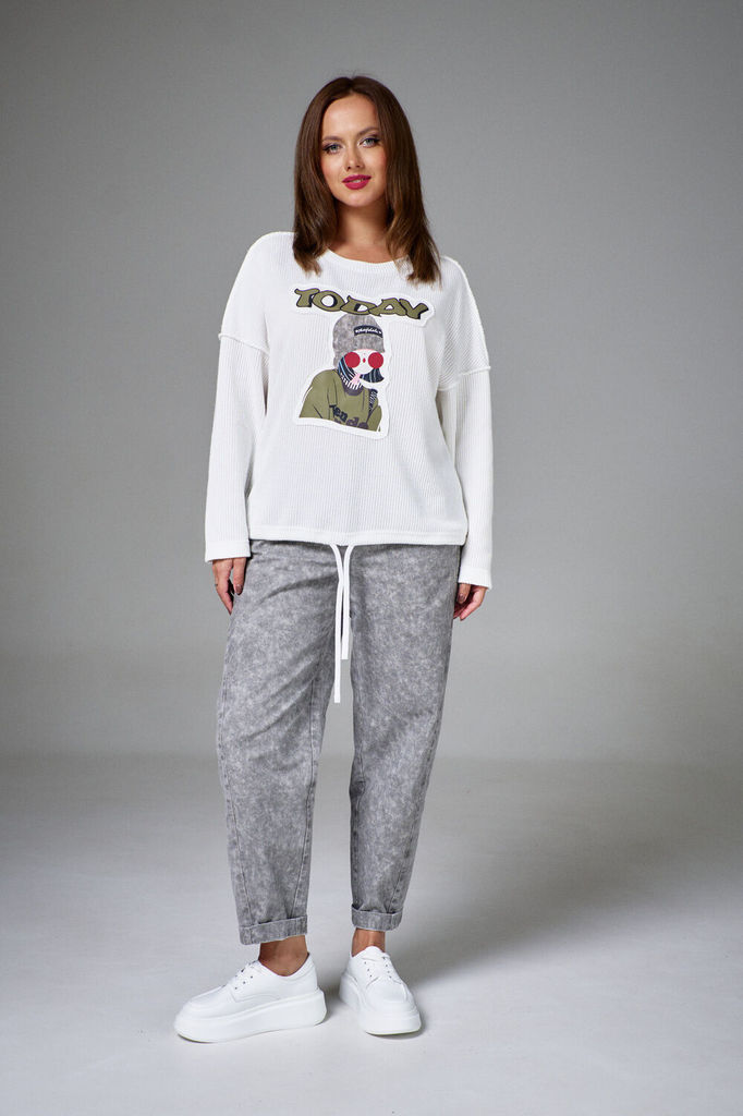 Состав: ПЭ-46%; Спандекс-4%; Хлопок-50%; Сезон: Осень-Зима Рост: 170 Страна бренда: Беларусь Состав: ПЭ-46%; Спандекс-4%; Хлопок-50%; Джемпер из хлопкового трикотажа "вязка" на мягкой стабилизирующей ... Показать описаниеоснове, свободного силуэта, с круглой горловиной. Рукав длинный, линия плеча спущена. На переде аппликация с авторским принтом. По низу изделия кулиса со шнуром.