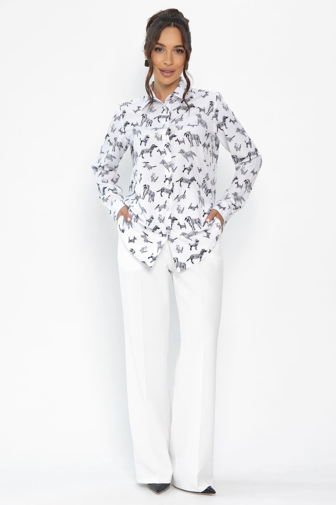 Состав: ПЭ-98%; Эластан-2%; Сезон: Лето Рост: 170 Страна бренда: Россия Состав: ПЭ-98%; Эластан-2%; Состав : 98% полиэстер, 2% эластан Материал : блузочный "Ниагара" Цвет : Белый Принт : собаки Силуэт... Показать описание : свободный Карманы : Отсутствуют Подкладка : Отсутствует Вид застежки : пуговицы Декоративные элементы : отсутствуют Длина : 44-78 см, 46-78 см, 48-78 см, 50-78 см, 52-78 см Отснято с брюками Б13888-33М и с жакетом Б13885-33М Добавьте в свой гардероб эту изящную рубашку, которая станет незаменимым элементом любого стиля! Её свободный крой не сковывает движений, обеспечивая максимальный комфорт. Рубашка застёгивается на пуговицы спереди, а её длинные рукава с манжетами аккуратно фиксируются пуговицей, создавая гармоничный и утончённый силуэт. Она идеально подходит как для офисных, так и для повседневных образов, придавая вашему стилю изысканность и шарм! Внимание! Рекомендуем ориентироваться на размерную сетку и выбирать свой привычный размер, согласно размерной таблице. *Допуск отклонения длины при массовом производстве 1-3 см является нормой.