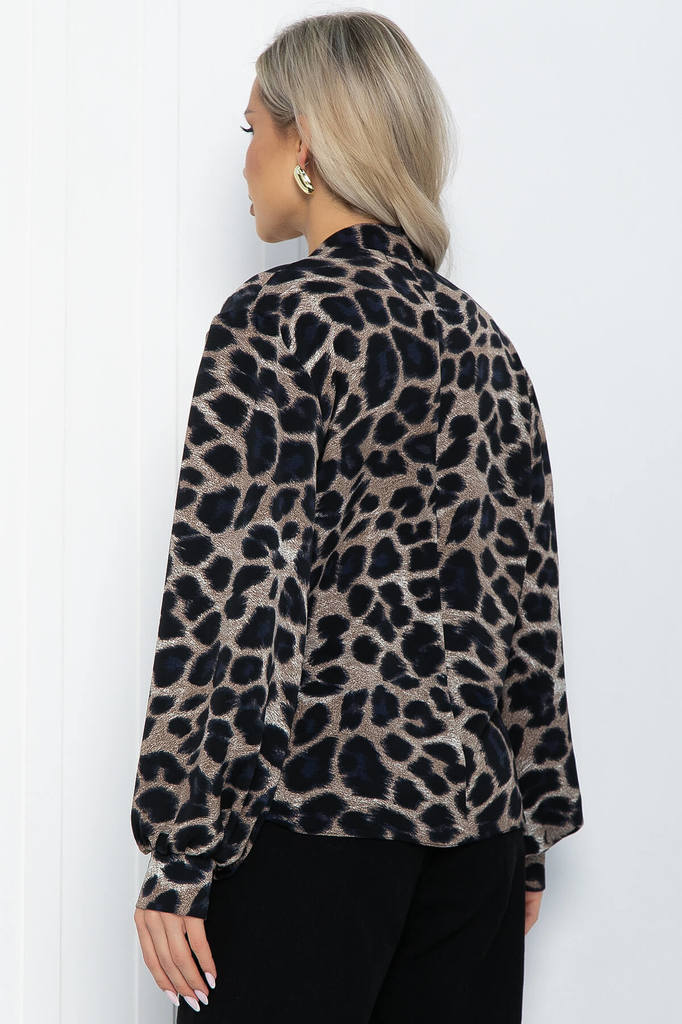 Артикул: Б8735. Ткань: шёлк "Армани". Состав: 97% п/э, 3% эластан. Цвет: коричневый. Принт: леопард. Вид застежки: пуговицы. Силуэт: прямой. Тип горловины: стойка с бантом. Карманы: отс... Показать описаниеутствуют. Длина изделия по спинке: 44/ 61 см, 46/ 62 см, 48-50/ 63 см, 52-54/ 64 см. Рост модели: 170 см. Леопардовый принт будет отличным дополнением простого нейтрального образа. При сочетании с однотонными и неяркими вещами можно позволить несколько украшений. Хорошо подчёркивает принт и сочетается с ним молочный, сливочный, кремовый и бежевый цвет. Уход за изделием: ручная стирка до 30 градусов; нельзя отбеливать; деликатный отжим; гладить при t не более 110 С; гладить с изнанки. *Допуск отклонения длины при массовом производстве 1-3 см является нормой.