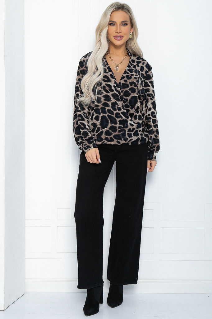 Артикул: Б11164. Тип ткани: синтетическая. Состав: 100% полиэстер. Материал: шифон. Цвет: коричневый. Принт: леопард. Вид застежки: завязки. Силуэт: свободный. Карманы: отсутствуют. Под... Показать описаниекладка: отсутствует. Декоративные элементы: струящаяся рюша по диагонали. Длина по спинке от верхней точки плеча: 46-50/ 69 см, 52-54/ 70 см. Размер изделия на модели: 44. Рост модели: 168 см. Блузка выполнена из турецкого шифона, приятна к телу, а леопардовый принт делает её идеальным выбором для создания стильных образов! Эта универсальная вещь прекрасно сочетается с различными брюками, джинсами, юбками, пиджаками и жакетами. Она помогает создать элегантный и шикарный образ, который не оставит окружающих равнодушными. Леопардовая блузка – для смелых, ярких и дерзких! Уход за изделием: ручная стирка до 30 градусов; нельзя отбеливать; отжим запрещён; гладить при t не более 110 С; гладить с изнанки. Внимание! Рекомендуем ориентироваться на размерную сетку и выбирать свой привычный размер, согласно размерной таблице. *Допуск отклонения длины при массовом производстве 1-3 см является нормой.