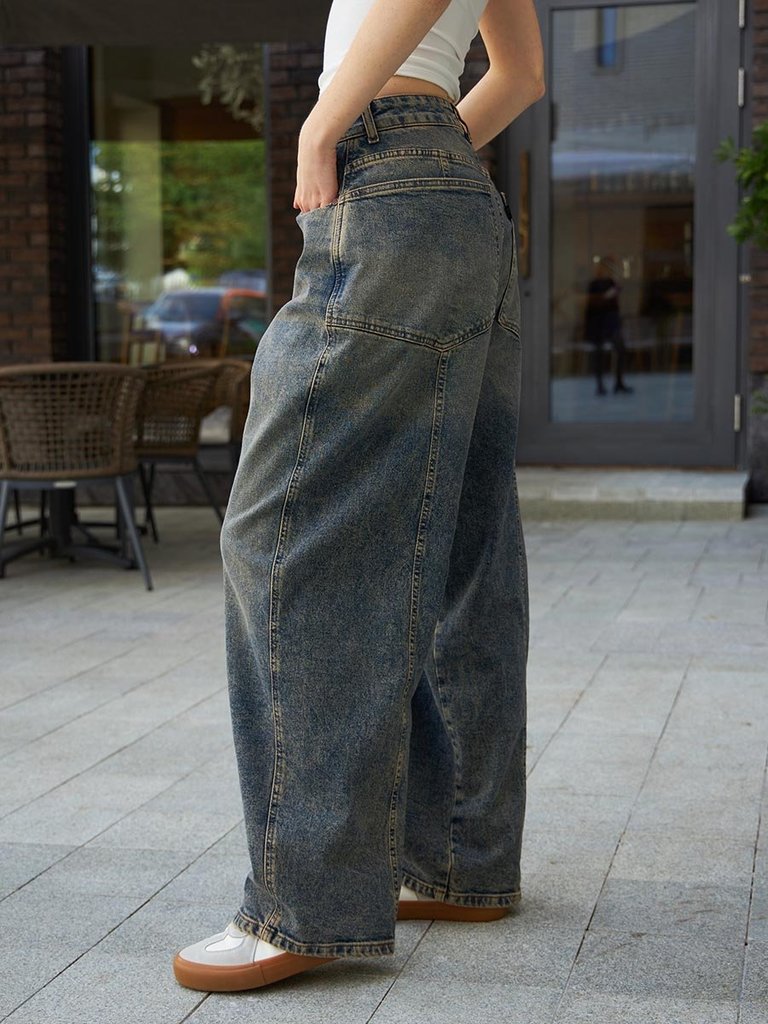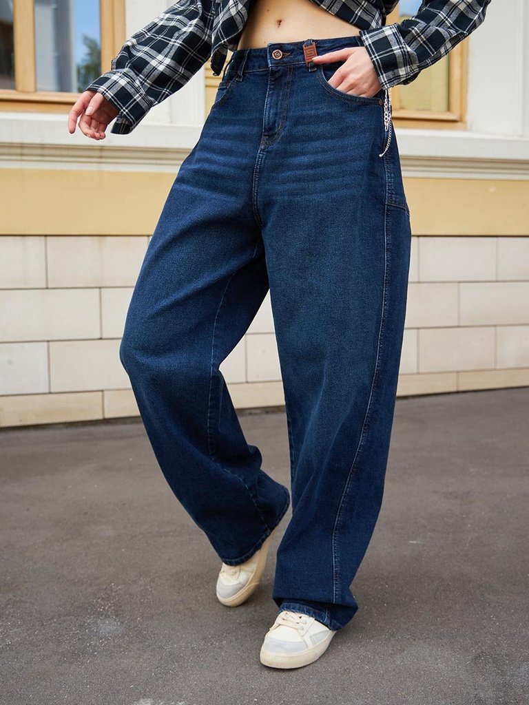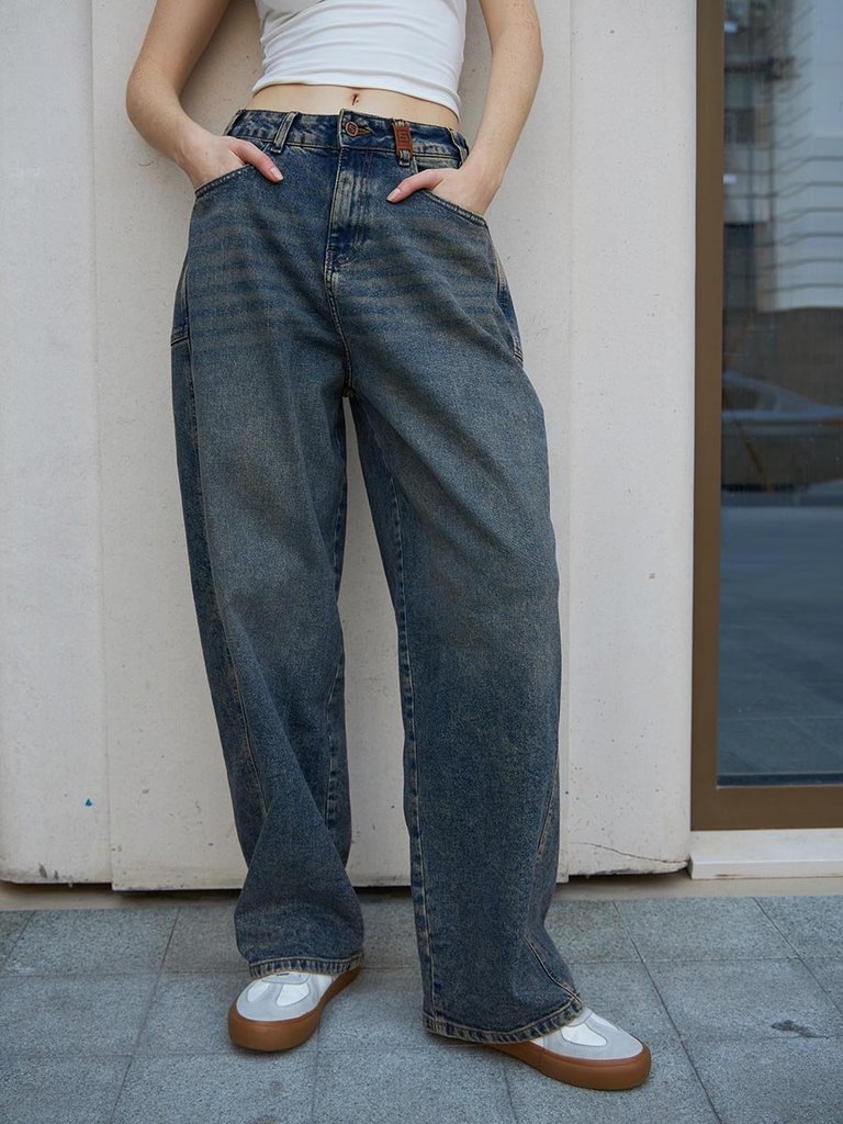 Цвет: стирка темная Состав: 99%Хлопок, 1%Эластан Материал: Blue denim 007 str. Вес материала: 12.1 Фит: Baggy fit Талия спереди: высокая Талия сзади: высокая Ширина колена: 30,5см Ширина низа: 24см ID... Показать описание: 253008 Описание Обновите свой образ трендовыми женскими джинсами Baggy Fit! Эта модель - не просто джинсы, это смелый эксперимент с кроем и силуэтом.  Baggy Fit на пике популярности! Нестандартный силуэт с смещенным вперед боковым швом  и дополнительными швами сзади  создают необычный, но узнаваемый мешковатый стиль. Суперширокие задние карманы визуально добавляют объема бедрам, подчеркивая дерзкий силуэт модели. Высокая талия  и  широкие штанины в плавно сужающиеся  к низу обеспечивает комфорт создавая  при этом современный элегантный силуэт. Джинсы абсолютно не сковывают движений и гарантируют комфорт на весь день. Темная  стирка "stone wash"это сочетание  старых традиций с новыми веяниями в посадке и крое. Уникальный дизайн и  крой выделит вас из толпы .Добавьте дерзкую ноту в свой стиль с этими необычными джинсами! Рекомендации по уходу * * * * * Стирать в стиральной машине при температуре 30° Не использовать отбеливатель Ручная стирка при температуре 30° Гладить при минимальной температуре Химчистка недопустима
