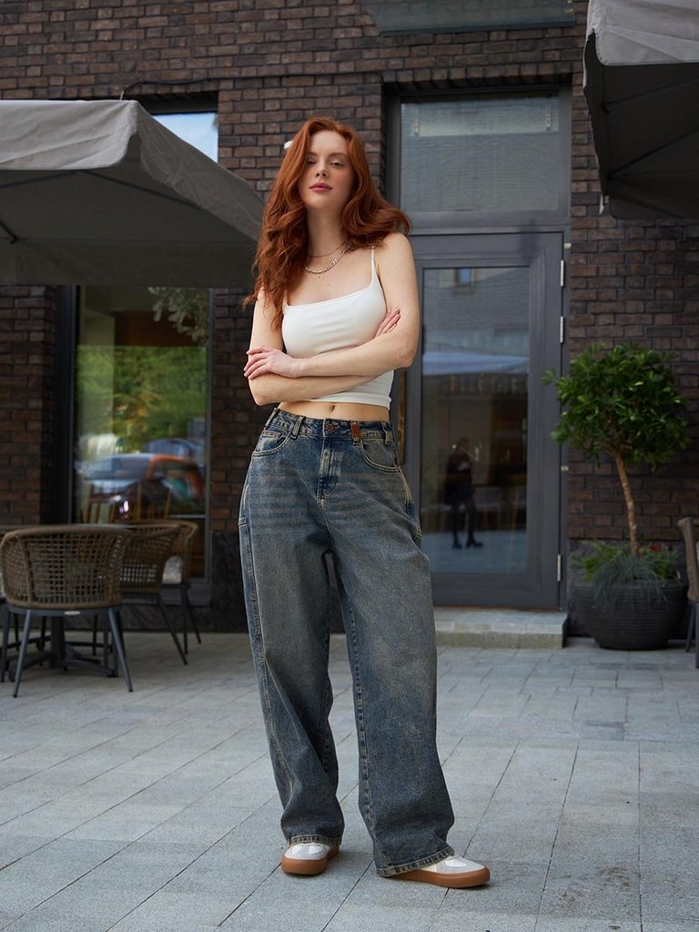 Цвет: стирка средняя Состав: 99%Хлопок, 1%Эластан Материал: Blue denim 007 str. Вес материала: 12.1 Фит: Baggy fit Талия спереди: высокая Талия сзади: высокая Ширина колена: 30,5см Ширина низа: 24см I... Показать описаниеD: 253007 Описание Обновите свой образ трендовыми женскими джинсами Baggy Fit! Эта модель - не просто джинсы, это смелый эксперимент с кроем и силуэтом.  Baggy Fit на пике популярности! Нестандартный силуэт с смещенным вперед боковым швом  и дополнительными швами сзади  создают необычный, но узнаваемый мешковатый стиль. Суперширокие задние карманы визуально добавляют объема бедрам, подчеркивая дерзкий силуэт модели. Высокая талия  и  широкие штанины в плавно сужающиеся  к низу обеспечивает комфорт создавая  при этом современный элегантный силуэт. Джинсы абсолютно не сковывают движений и гарантируют комфорт на весь день. Специальная  стирка  "towel wash", мраморный эффект. Эти джинсы с уникальным тинтованным эффектом "GET DIRTY", т.е. эффектом  запачканных джинсов добавят изюминку в ваш гардероб. Уникальный дизайн и  крой выделит вас из толпы .Добавьте дерзкую ноту в свой стиль с этими необычными джинсами! Рекомендации по уходу * * * * * Стирать в стиральной машине при температуре 30° Не использовать отбеливатель Ручная стирка при температуре 30° Гладить при минимальной температуре Химчистка недопустима