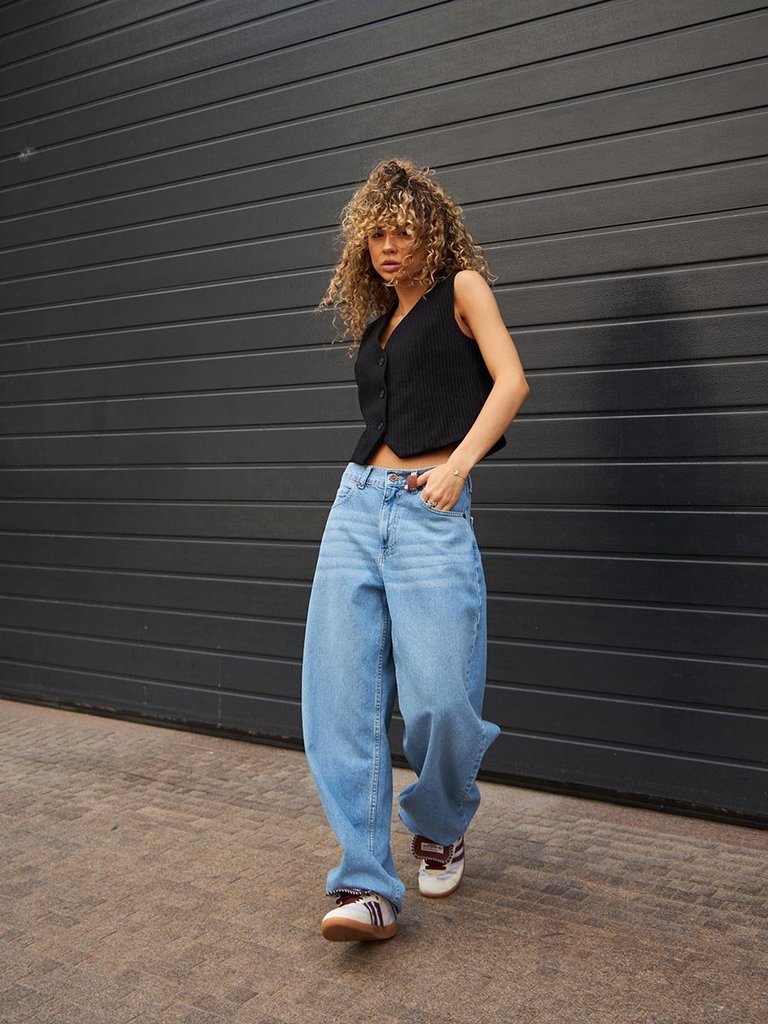Цвет: стирка средняя Состав: 99%Хлопок, 1%Эластан Материал: Blue denim 007 str. Вес материала: 12.1 Фит: Baggy fit Талия спереди: высокая Талия сзади: высокая Ширина колена: 27,5см Ширина низа: 27,5см... Показать описание ID: 253015 Описание Женские модные джинсы с пятью карманами. Посадка Baggy fit , высокая талия спереди и сзади, широкие штанины  по всей длине. Для  лучшего облегания в области бедер под передними карманами сделана вытачка. Застежка на молнии. Выполнены из слабоэластичной ткани denim comfort stretch. Средня стирка "stone wash". Рекомендации по уходу * * * * * Стирать в стиральной машине при температуре 30° Не использовать отбеливатель Ручная стирка при температуре 30° Гладить при минимальной температуре Химчистка недопустима